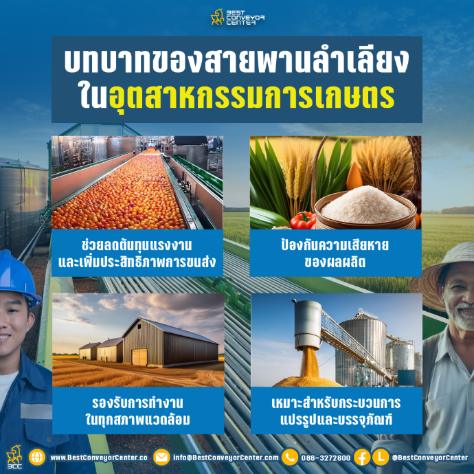 อุตสาหกรรมการเกษตรในปัจจุบันต้องการเพิ่มประสิทธิภาพในการขนส่งผลผลิตเพื่อลดต้นทุน สายพานลำเลียง จึงเป็นอุปกรณ์สำคัญที่ช่วยให้รวดเร็วและมีประสิทธิภาพ