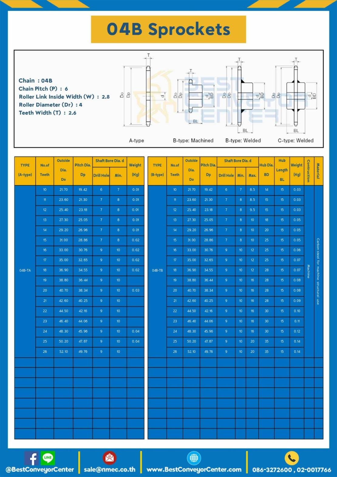 เฟืองโซ่เหล็ก 2 แถว แบบมีดุมข้างเดียว 04B-2R-44TB