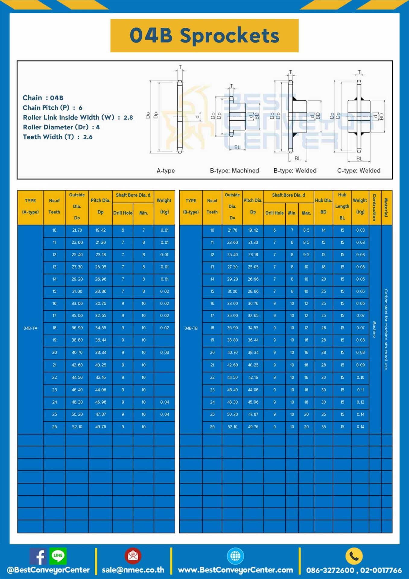 เฟืองโซ่เหล็ก 2 แถว แบบแผ่นเรียบ 04B-2R-57TA