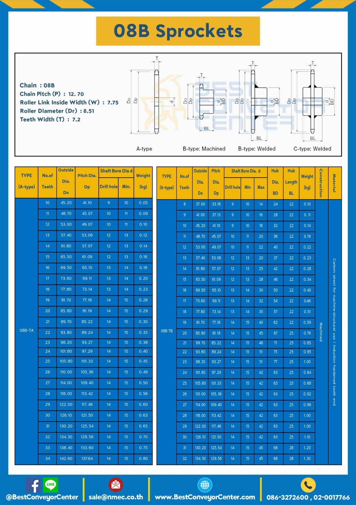 เฟืองโซ่เหล็ก 2 แถว แบบมีดุมข้างเดียว 08B-2R-12TB