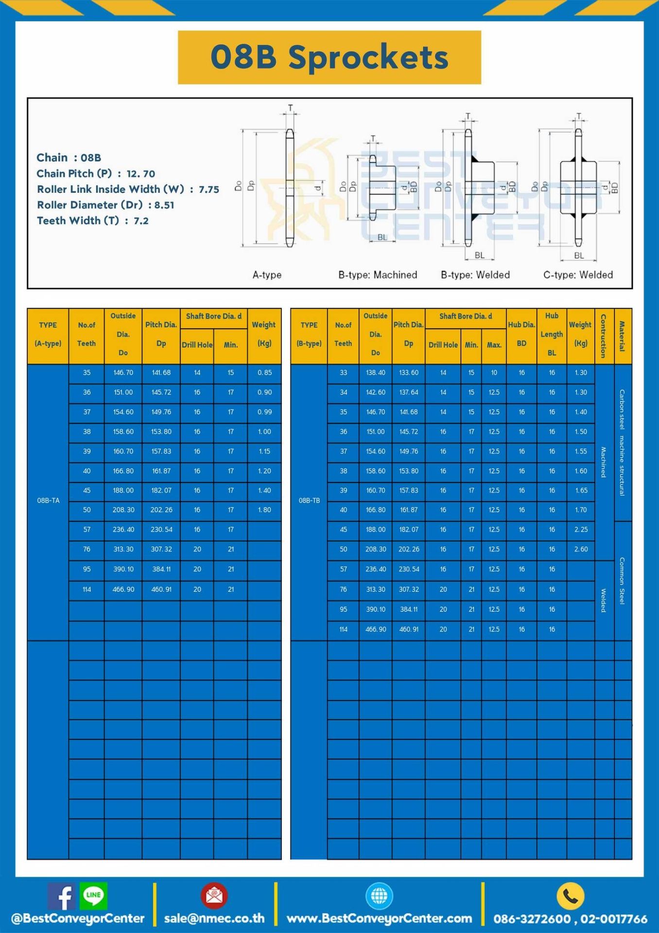เฟืองโซ่เหล็ก 3 แถว แบบแผ่นเรียบ 08B-3R-40TA