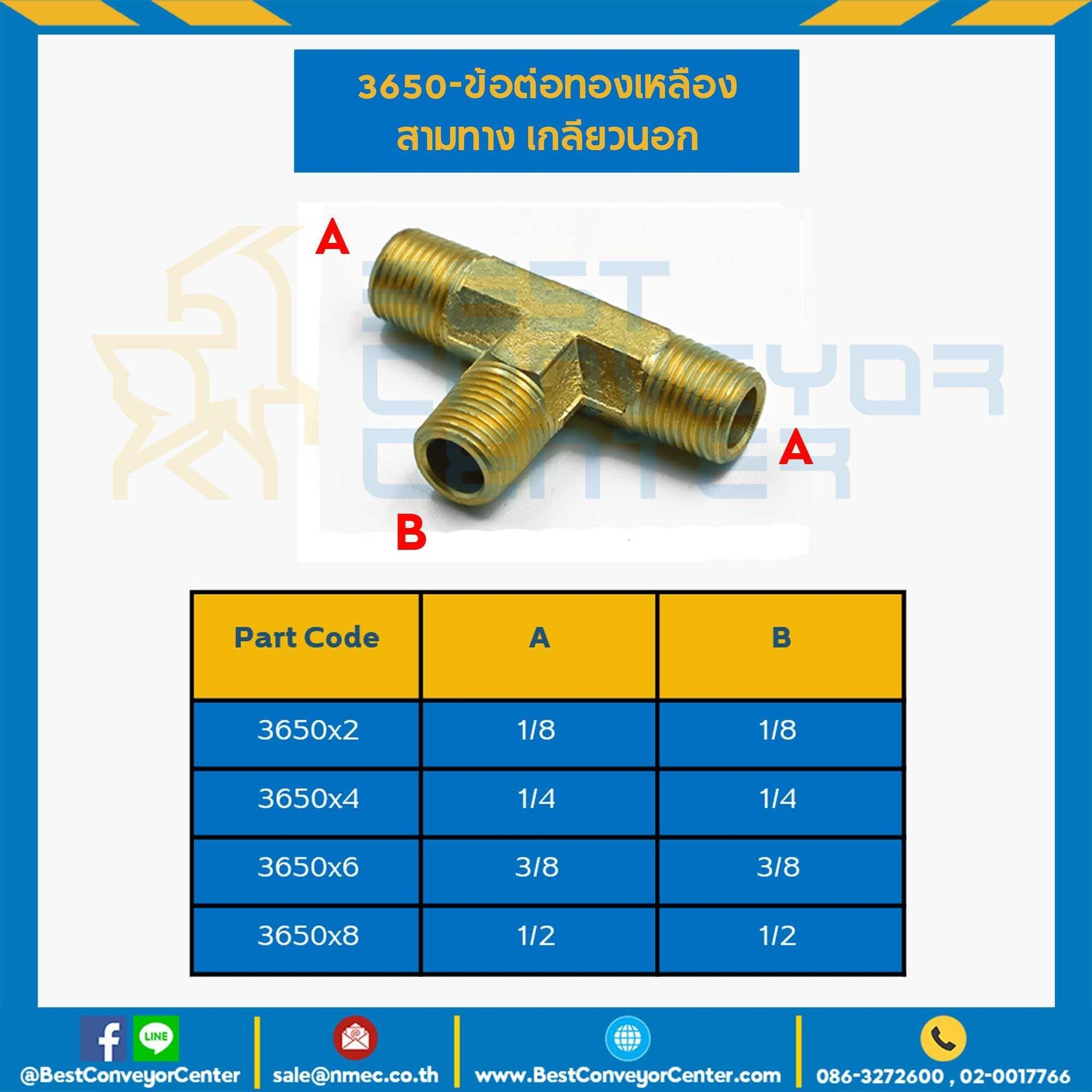 ข้อต่อทองเหลืองสามทางเกลียวนอก 3650×6