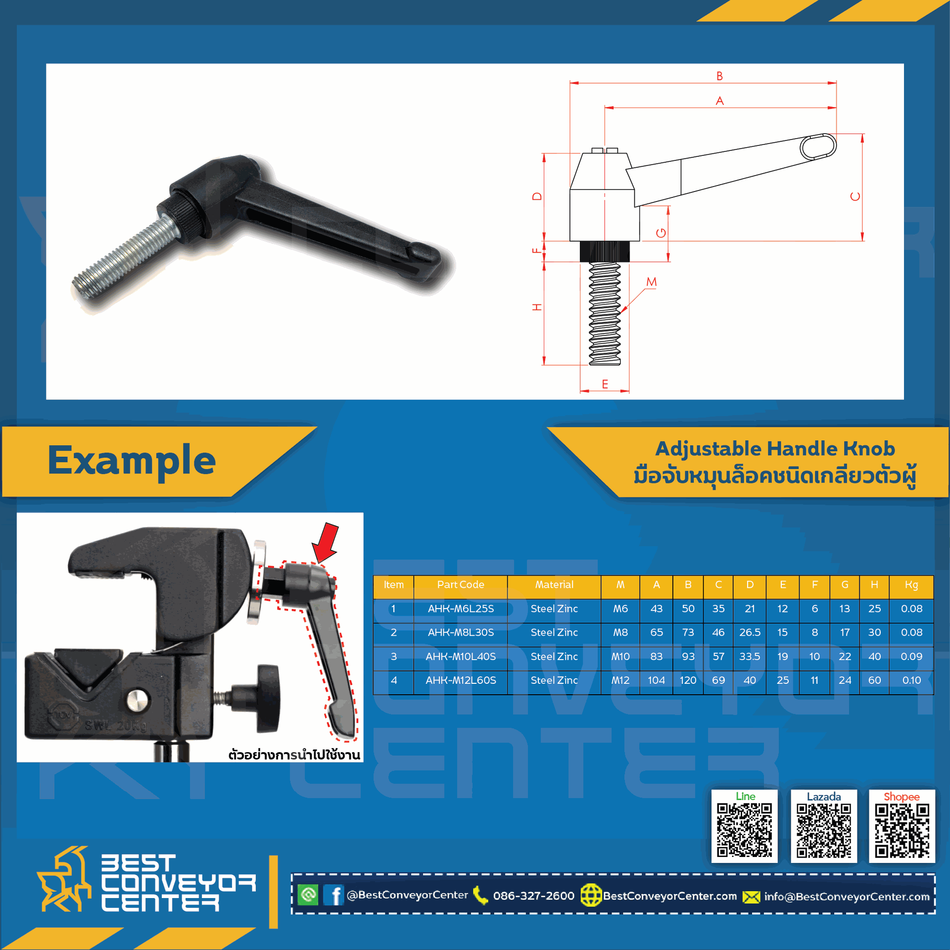 ด้ามจับมือหมุนพลาสติกตัวผู้ AHK-M10L30SB