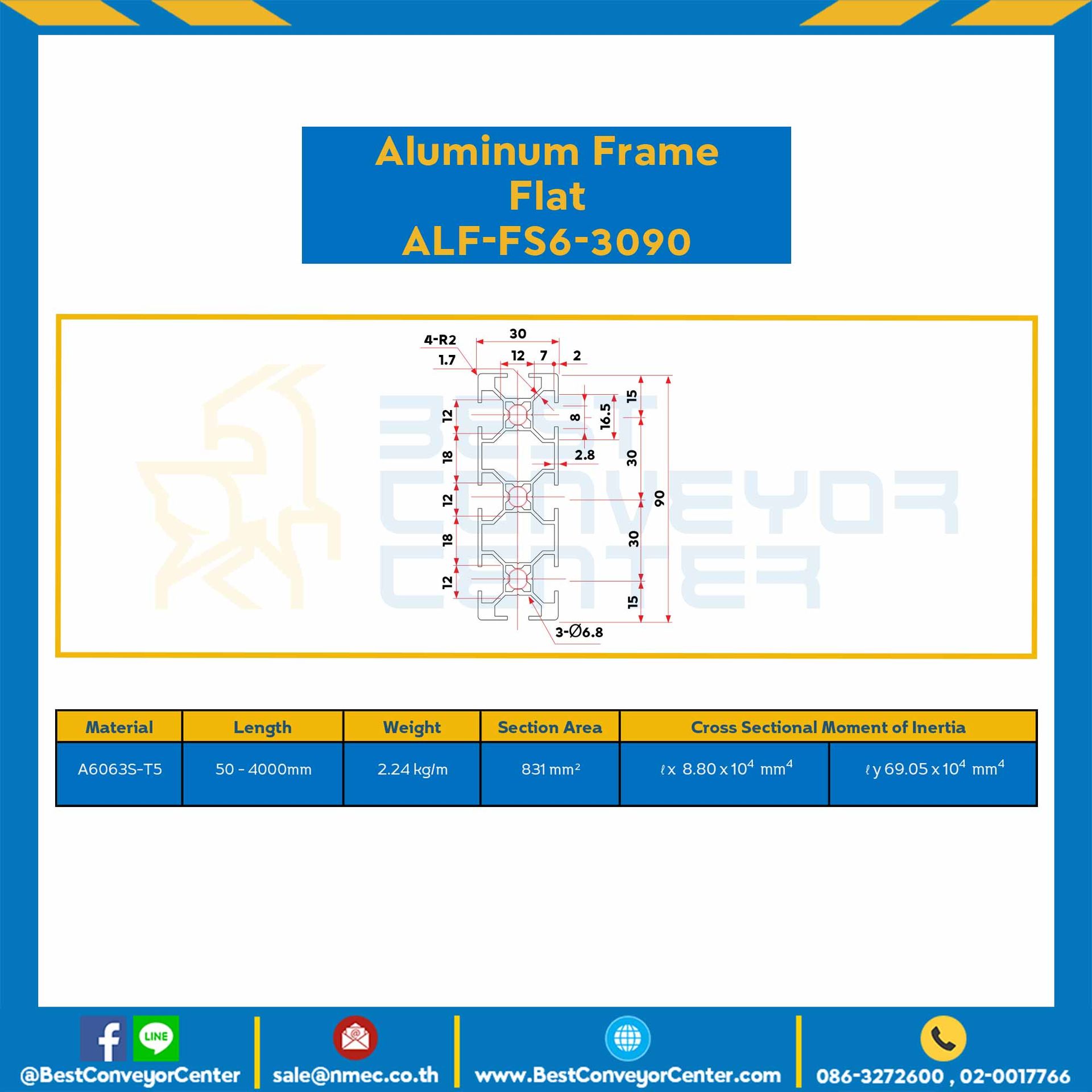 Aluminum Frame 6 Series Slot width 8 30×90 mm. L1950 mm. Clear Anodize (Flat) : ALF-FS6-3090-1950