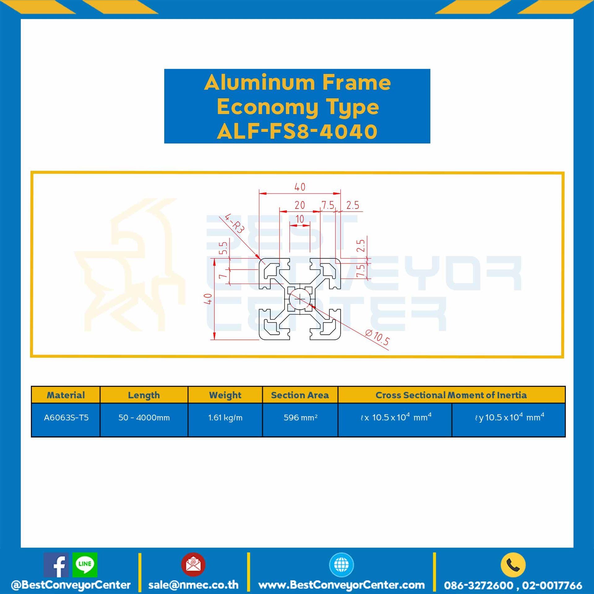 Aluminum Frame 8 Series Slot width 10 40×40 mm. L1500 mm. Clear Anodize (Economy Type) : ALF-FS8-4040-1500