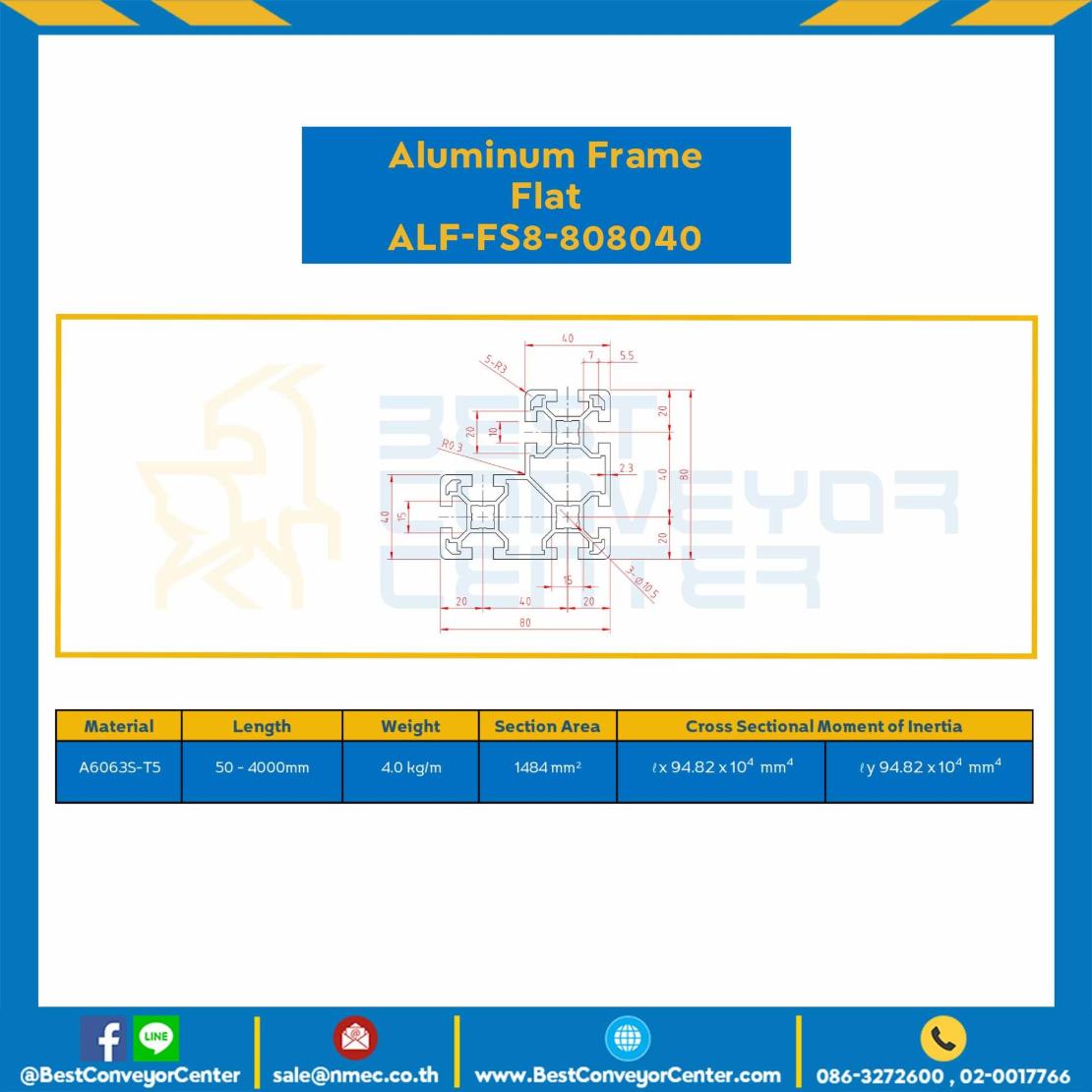 Aluminum Frame 8 Series Slot width 10 80x80x40 mm. L3950 mm. Clear Anodize (Flat) : ALF-FS8-808040-3950