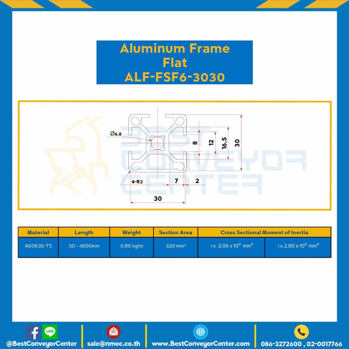 Aluminum Frame 6 Series Slot width 8 30×30 mm. L2350 mm. Clear Anodize (Flat) : ALF-FSF6-3030-2350