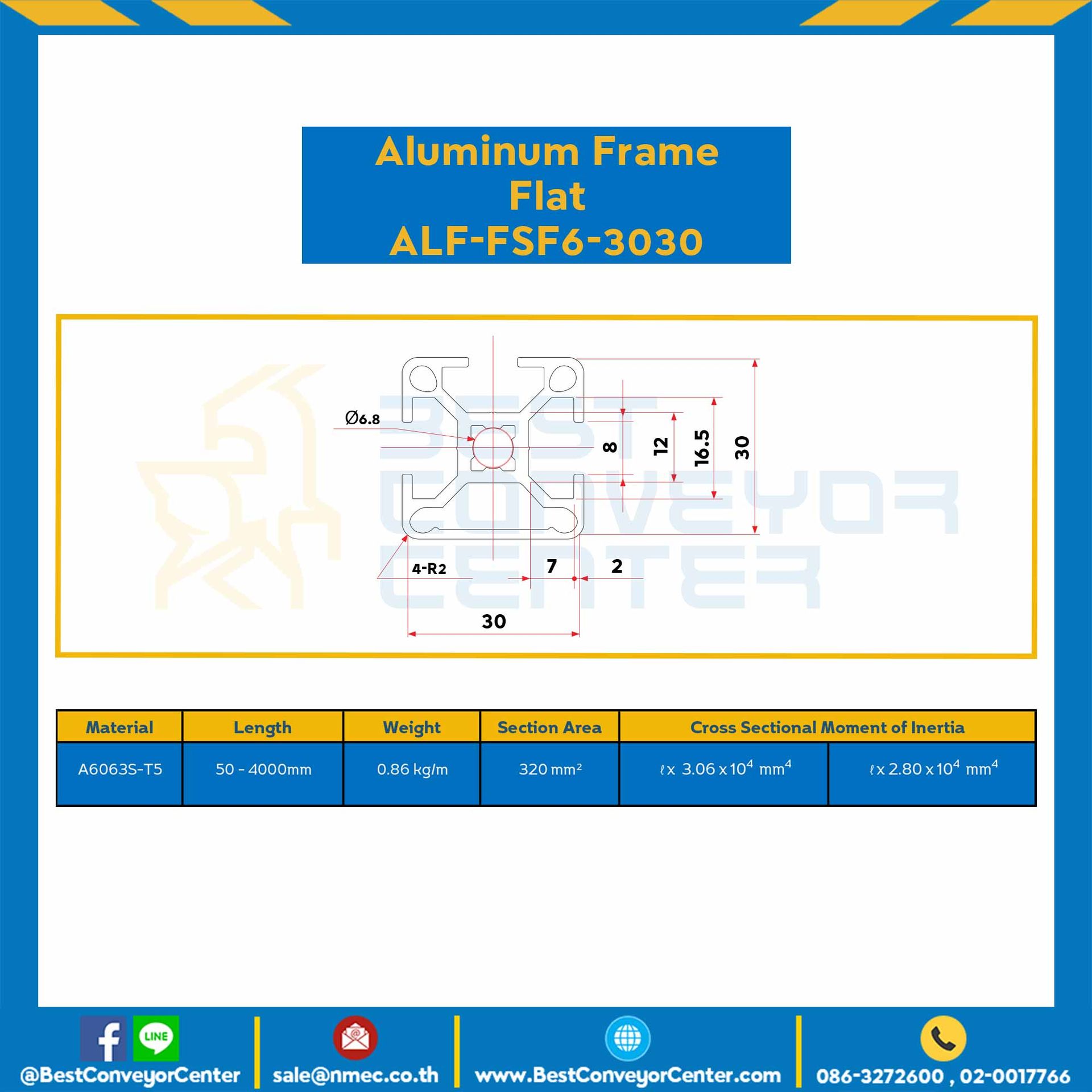 Aluminum Frame 6 Series Slot width 8 30×30 mm. L750 mm. Clear Anodize (Flat) : ALF-FSF6-3030-750