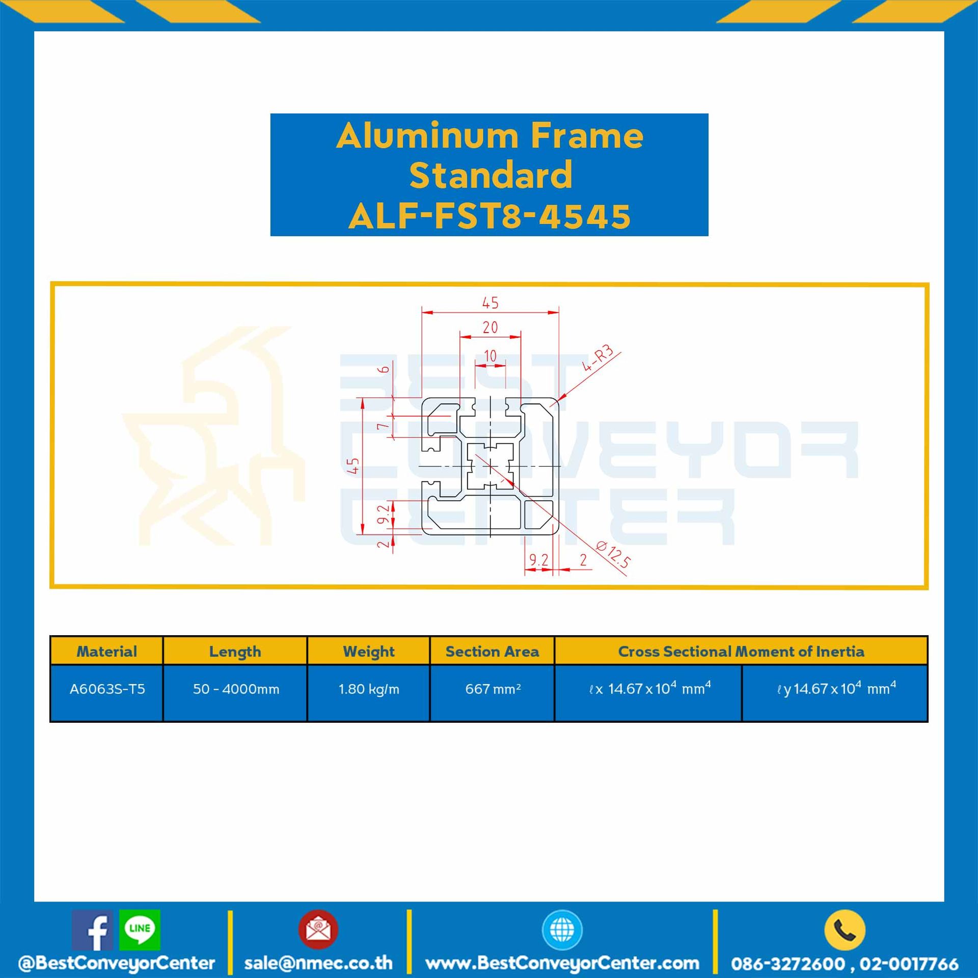 Aluminum Frame 8-45 Series Slot width 10 45×45 mm. L2500 mm. Clear Anodize : ALF-FST8-4545-2500