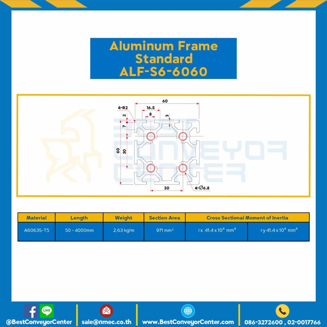 Aluminum Frame 6 Series Slot width 8 60×60 mm. L3950 mm. Clear Anodize : ALF-S6-6060-3950
