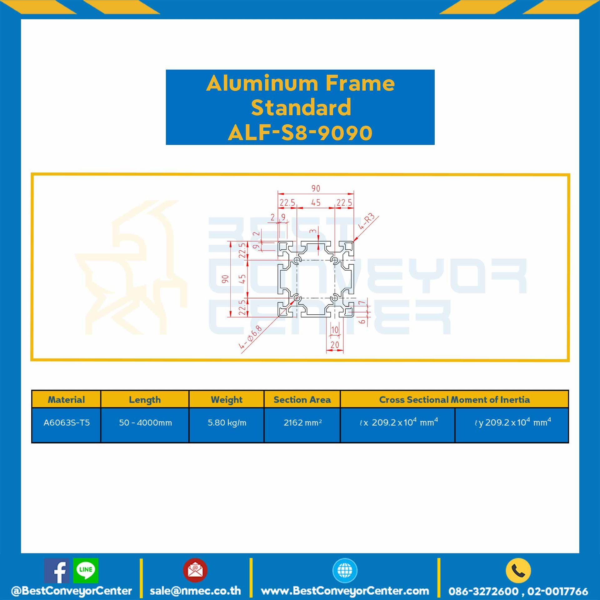 Aluminum Frame 8-45 Series Slot width 10 90×90 mm. L900 mm. Clear Anodize : ALF-S8-9090-900