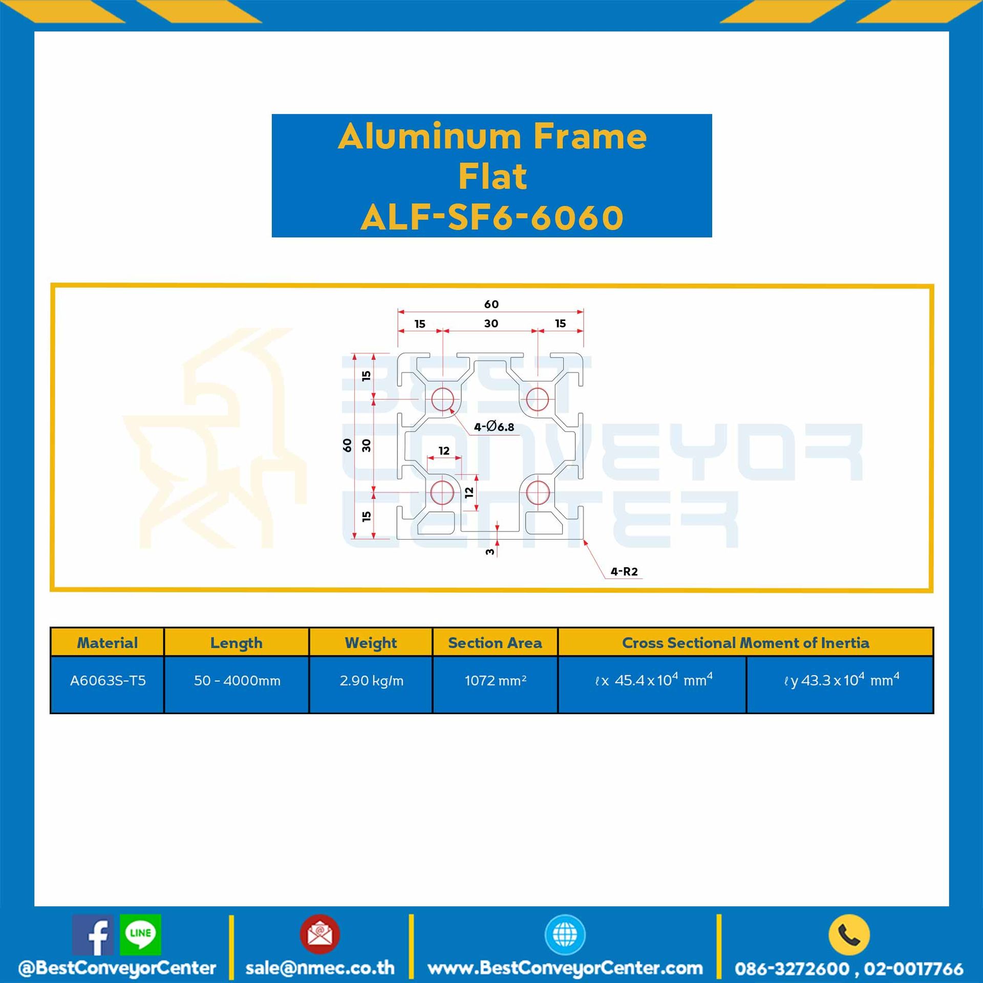 Aluminum Frame 6 Series Slot width 8 60×60 mm. L250 mm. Clear Anodize (Flat) : ALF-SF6-6060-250