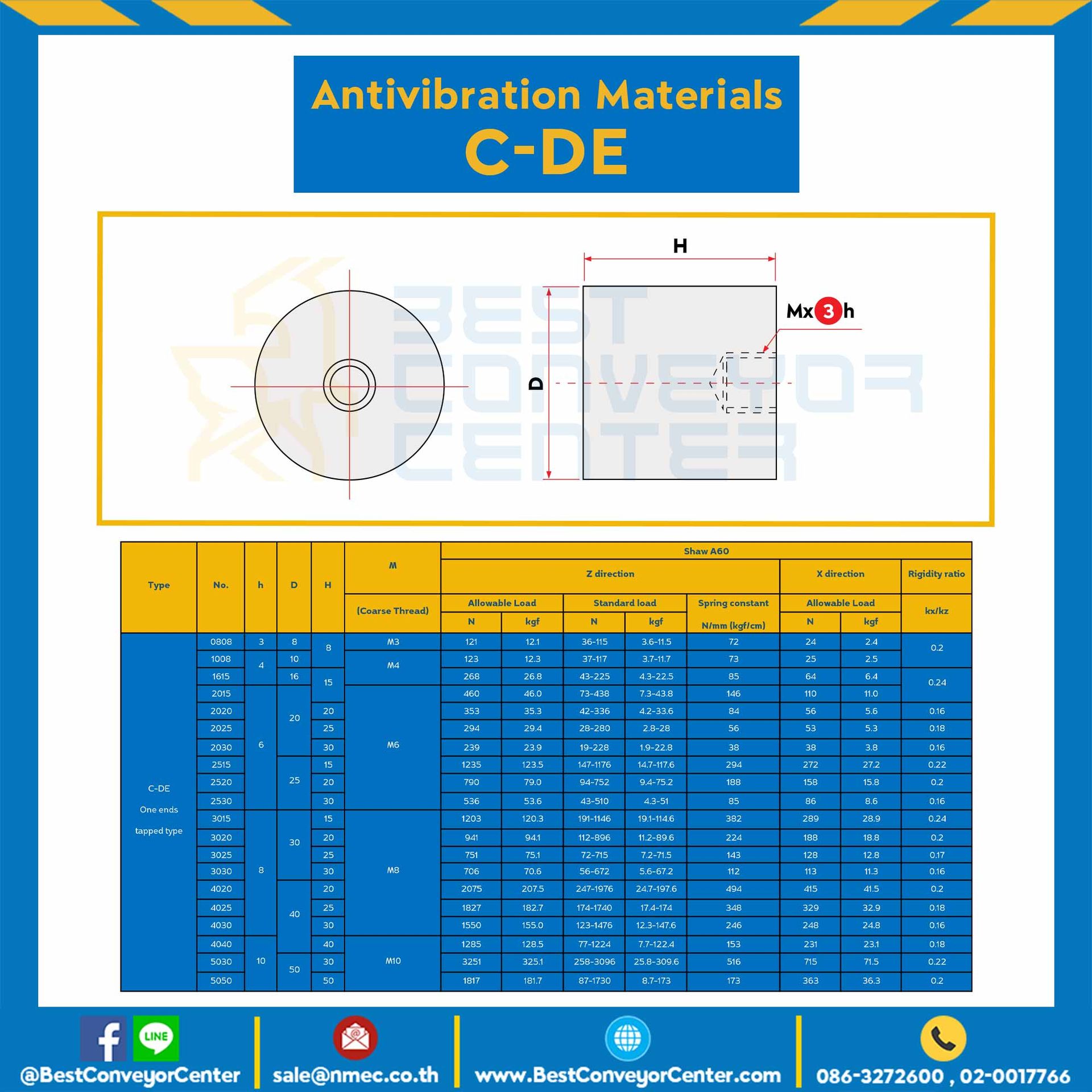 ลูกยางกันสั่นสะเทือน ชนิดมีรูต๊าปหนึ่งด้าน C-DE : C-DE3020-M8x30