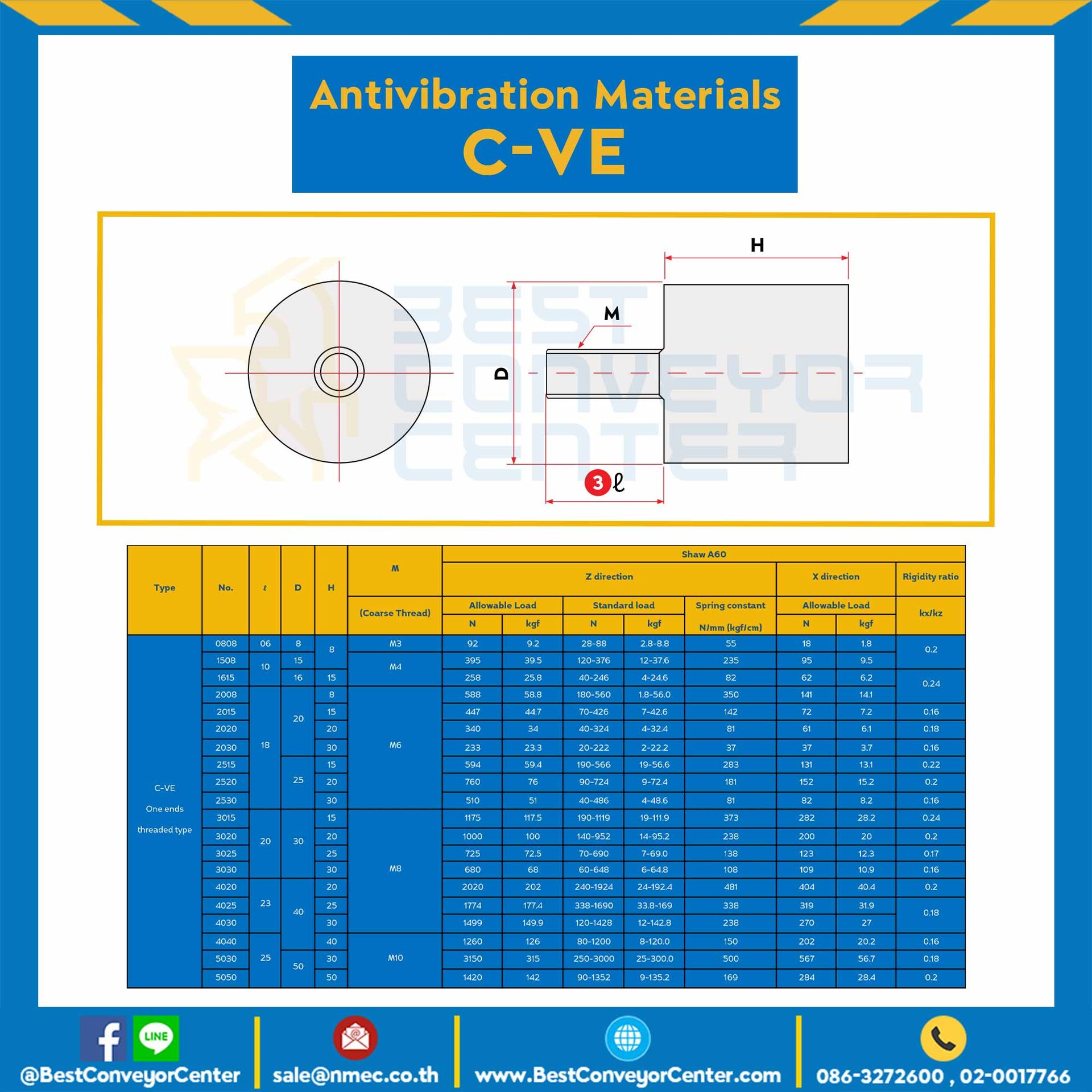 ลูกยางกันสั่นสะเทือน ชนิดเกลียวนอกหนึ่งด้าน C-VE : C-VE4020-M8x40