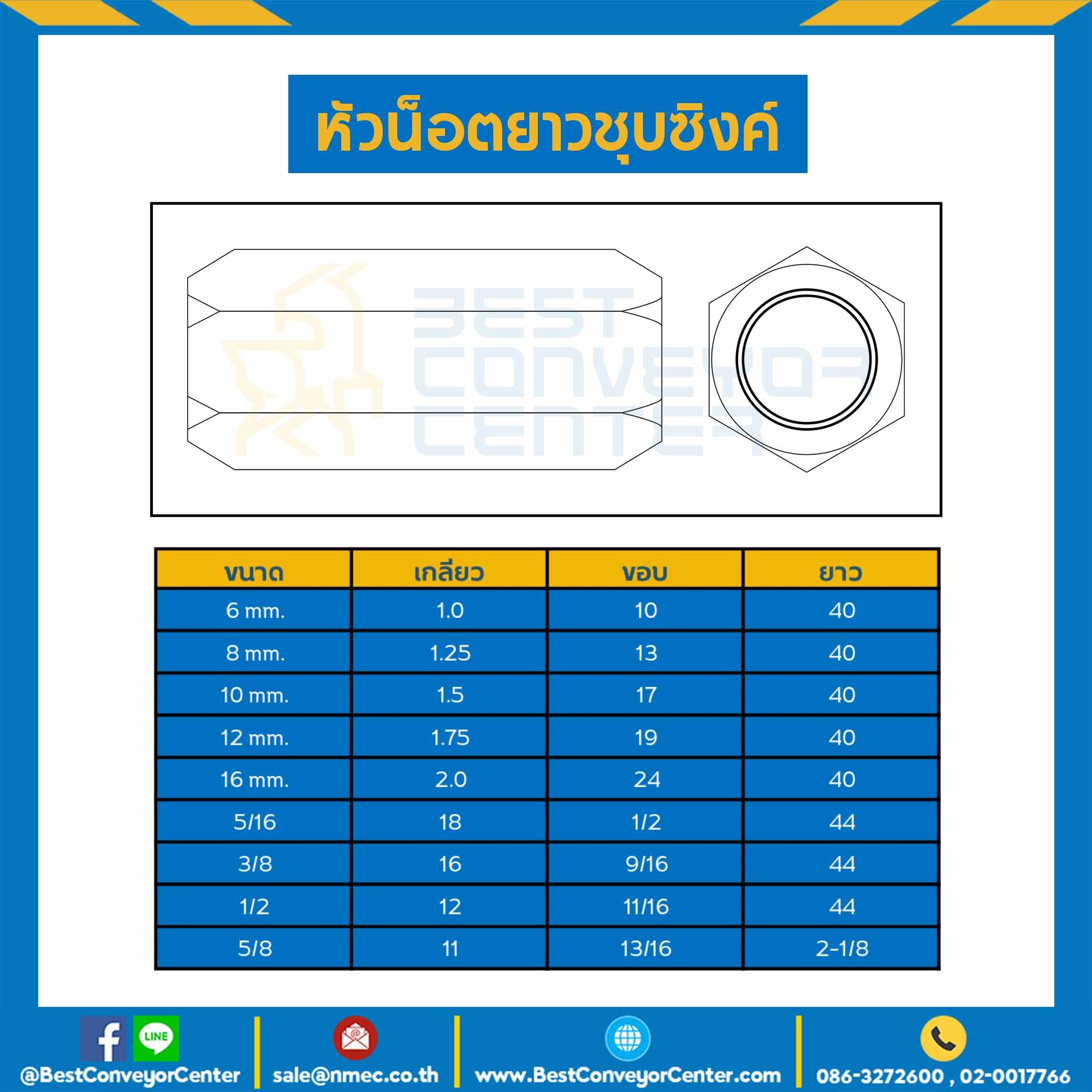 หัวน็อตยาวชุบซิงค์ ขนาด 1/2″x12 ขอบ 11/16 ยาว 44 mm. : CN-1/2