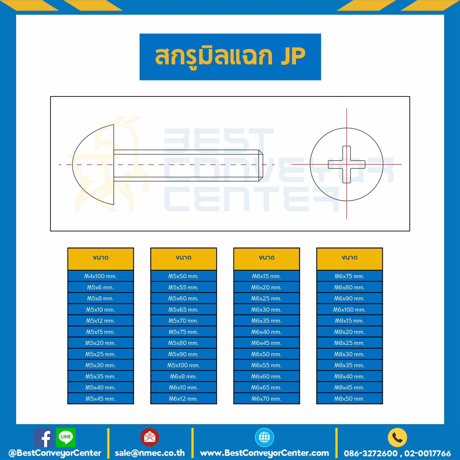 สกรูสี่แฉกหัวกลมนูน JP+ ชุบขาว ขนาด M2x5 mm. : HJP-M2L5S