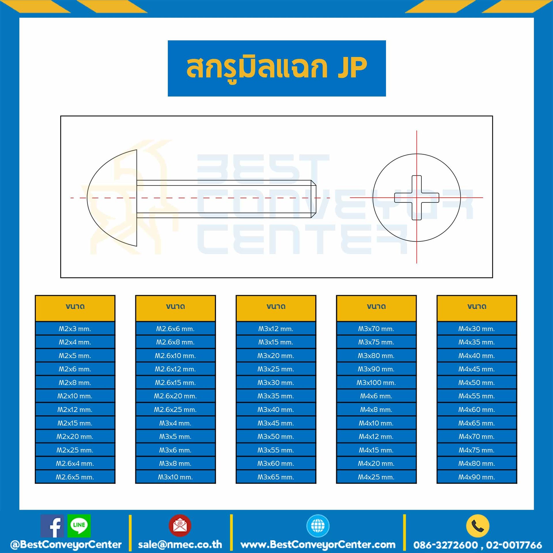 สกรูสี่แฉกหัวกลมนูน JP+ ชุบขาว ขนาด M5x70 mm. : HJP-M5L70S