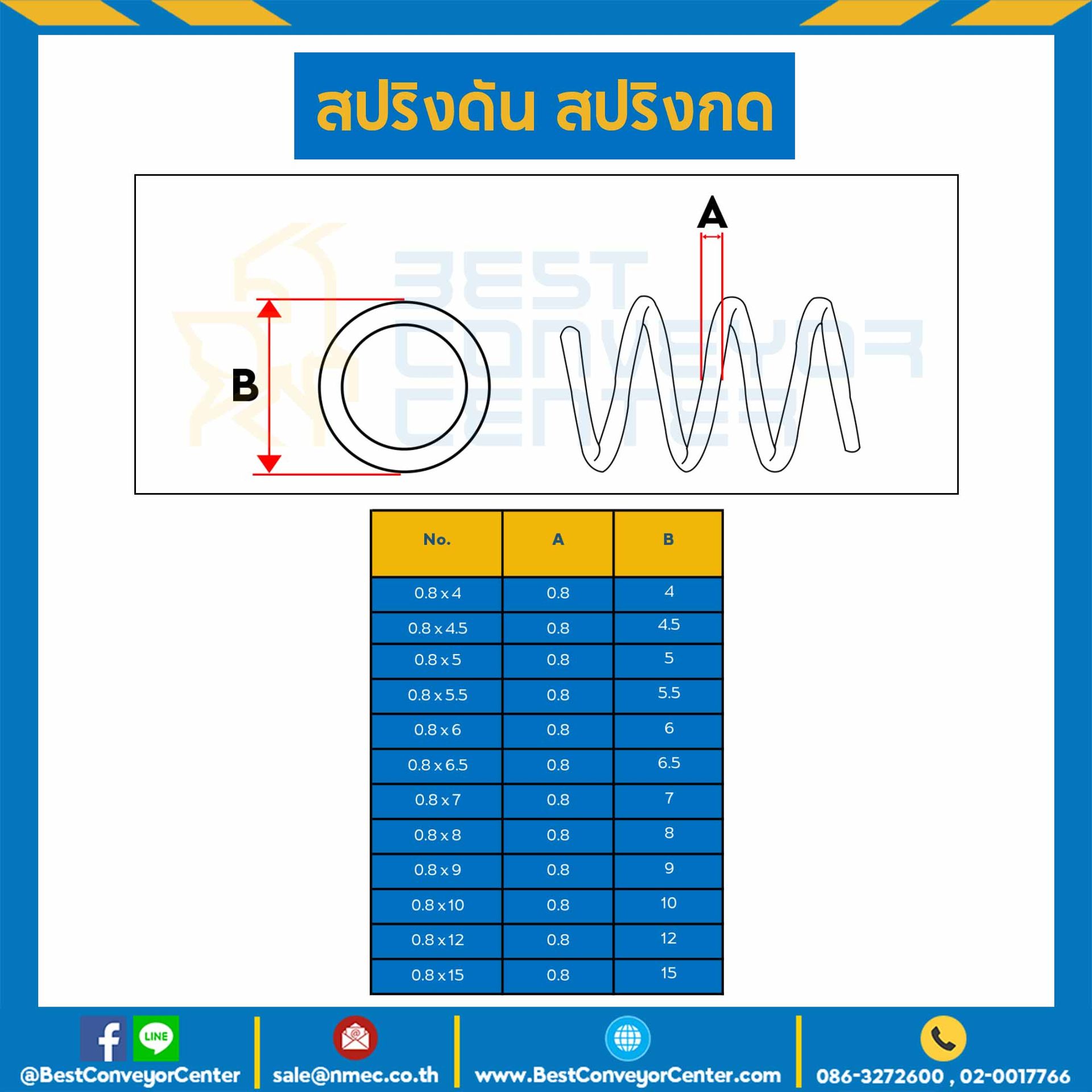 สปริงดันแบบเส้น 0.8 mm. วงนอก 5 mm. ยาว 300 mm. : SWC-N0.8×5.5L300