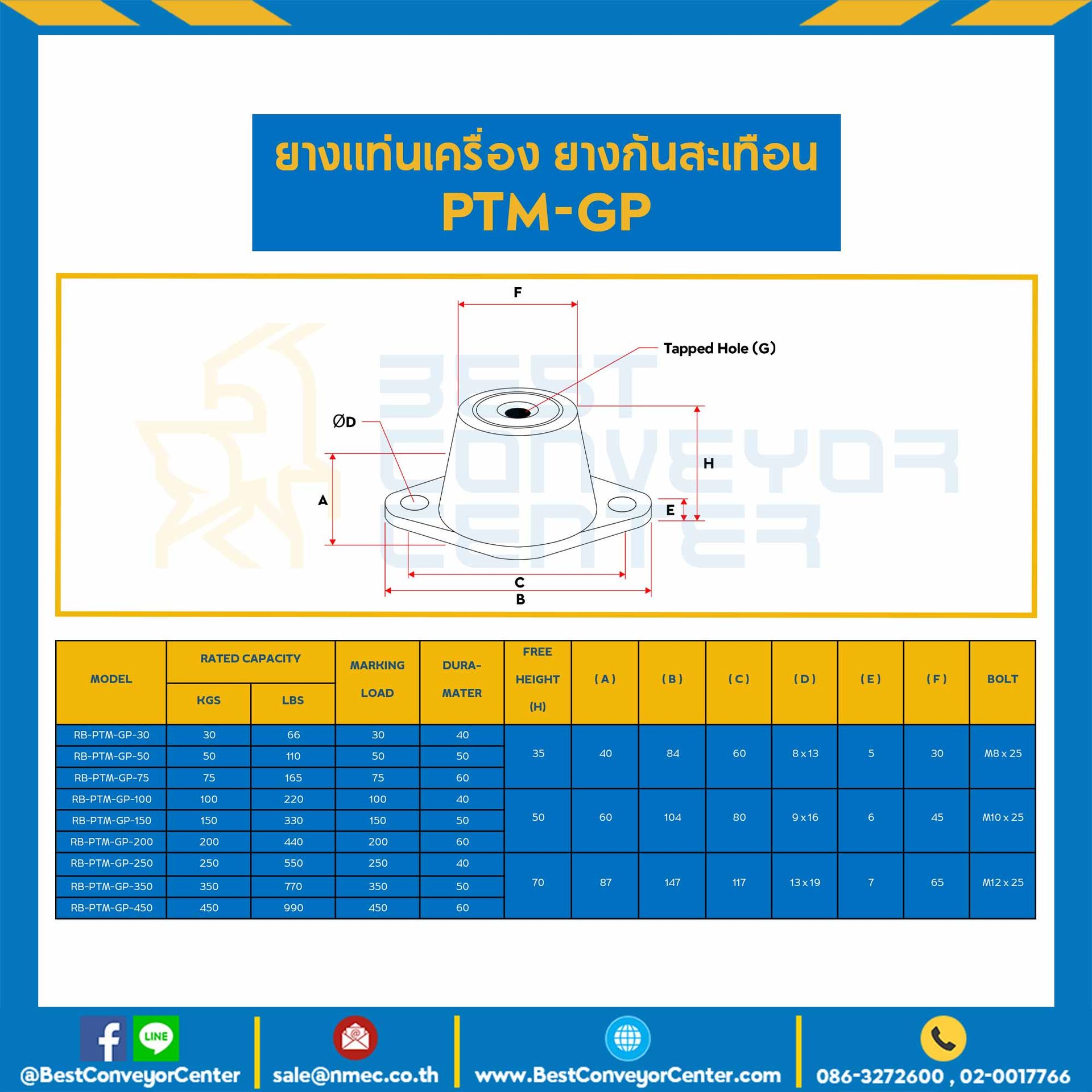 ลูกยางรับแรงสั่นสะเทือน PTM-GP : RB-PTM-GP-75