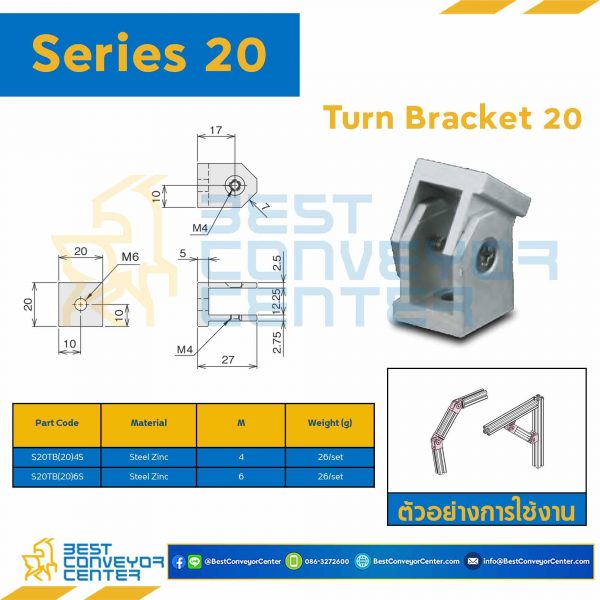 S20TB-20-4S TURN BRACKET 20 : Series 20 Steel Zinc M4
