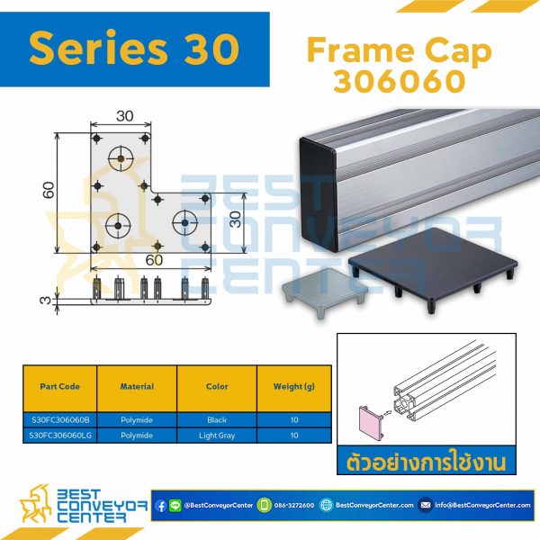 S30FC3060LG FRAME CAP 3060 : Series 30 Polyamide Light Gray