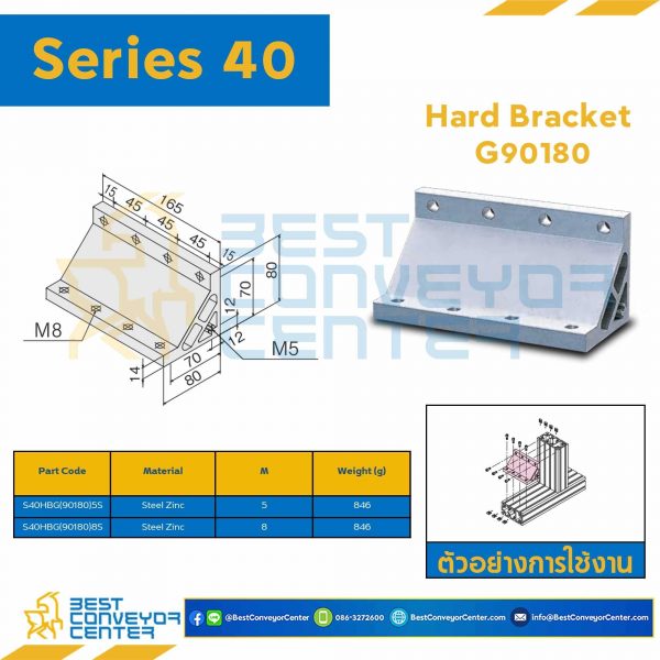 S40HB-G90180-8S HARD BRACKET G90180 : Series 40 Steel Zinc M8