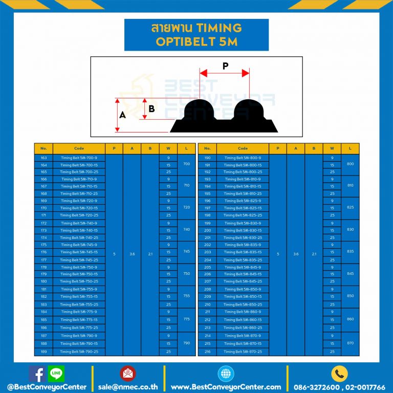 Timing Belt 5M-2250-9 สายพานไทม์มิ่ง Timing Optibelt ยาว 2250 มิล, ร่อง 5M หน้ากว้าง 9 มิล