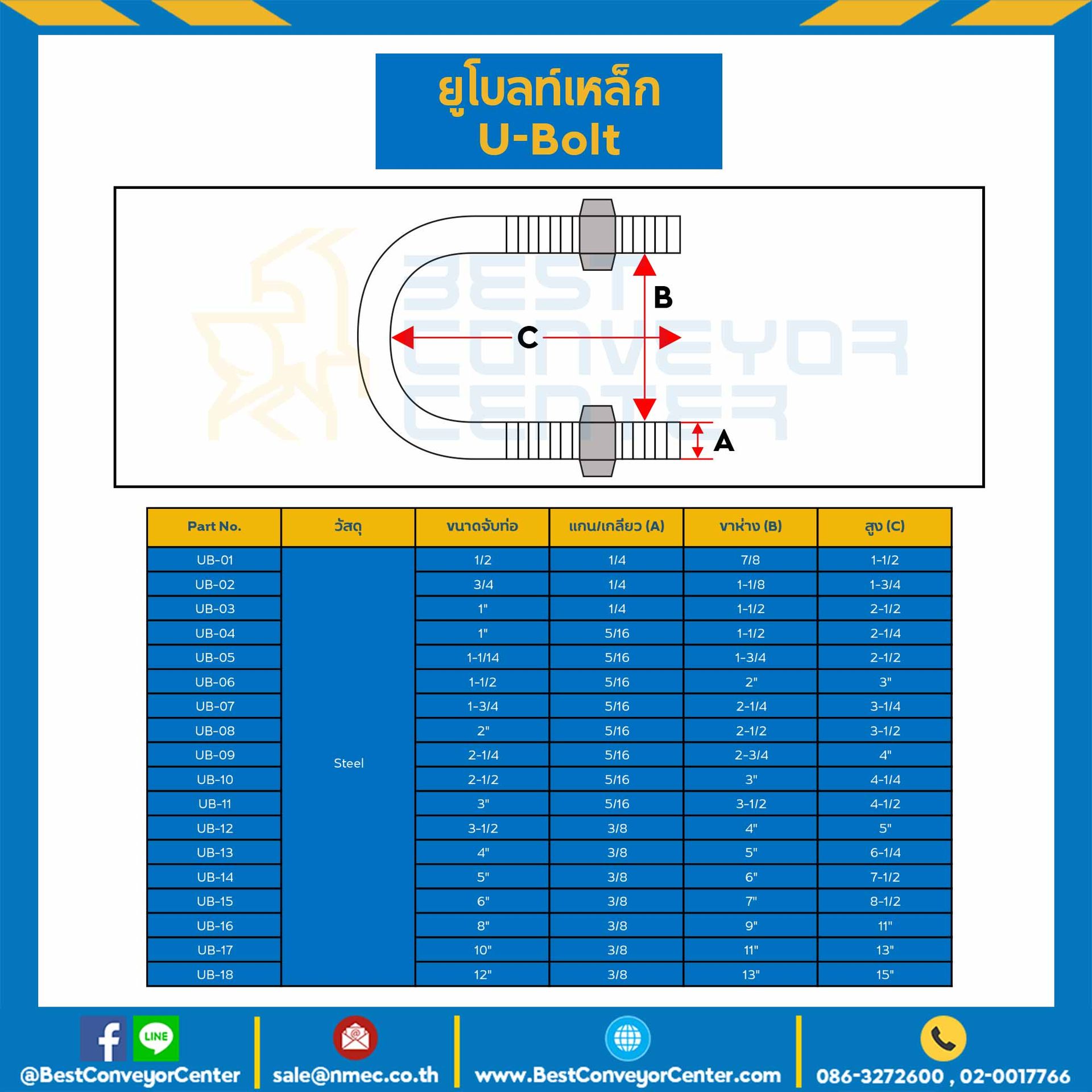 UB-09 ยูโบลท์เหล็ก พร้อมหัวน๊อต 2 ตัว ขนาด 2-1/4 แกน 5/16