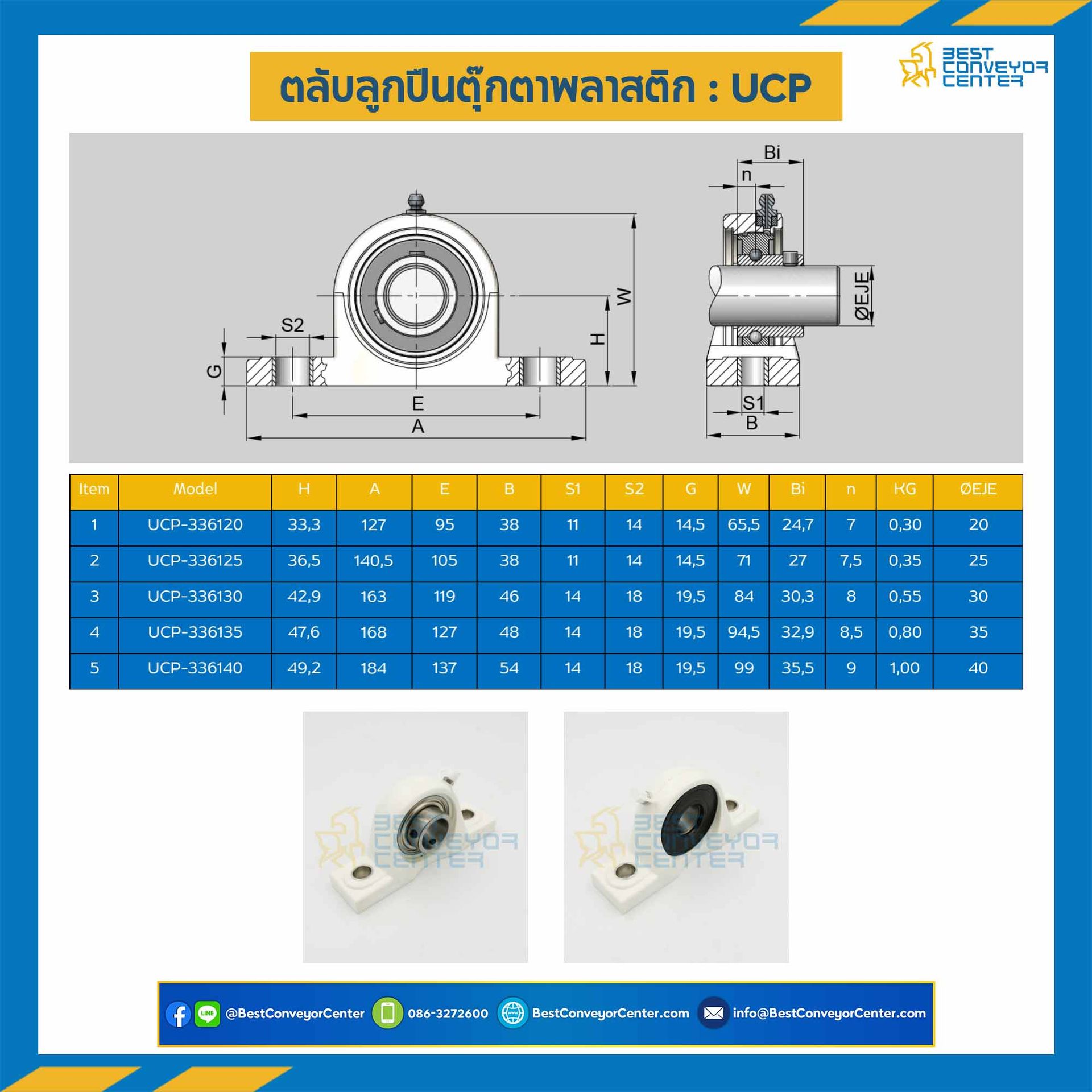 ลูกปืนตุ๊กตา UCP3361 พลาสติกสีขาว ลูกปืนเหล็ก รูเพลา 25 mm. : UCP3361-25