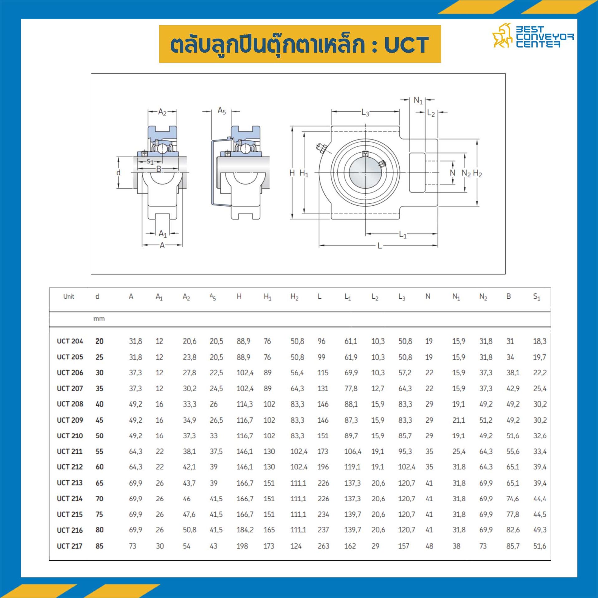 ลูกปืนตุ๊กตา UCT206 ลูกปืนเหล็ก รูเพลา 30 mm. : UCT206-30