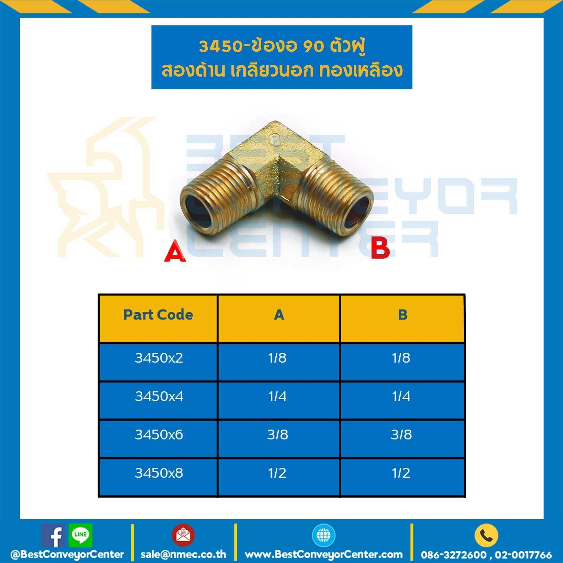 ข้องอ 90 ตัวผู้สองด้านเกลียวนอกทองเหลือง 3450×6