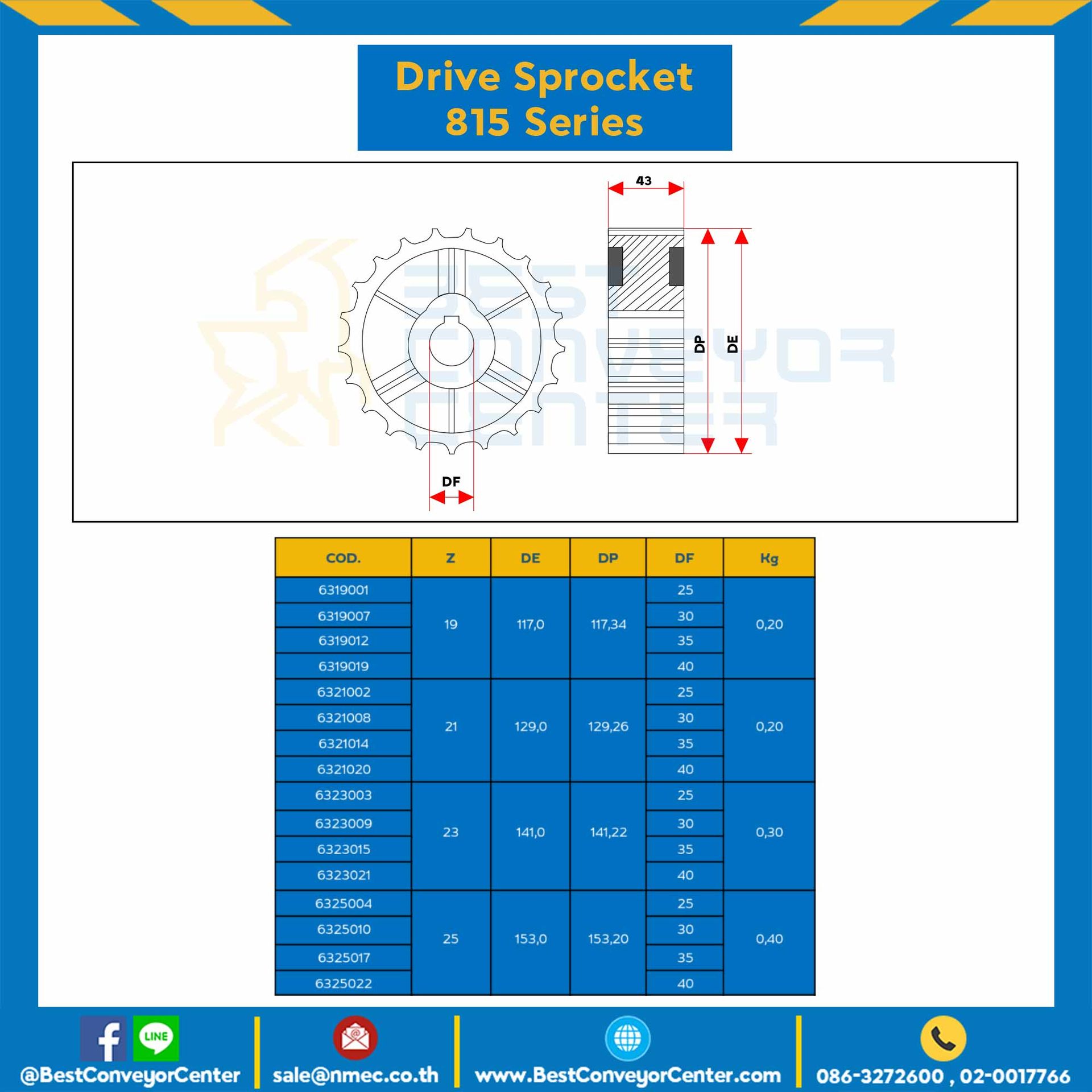 SPROCKET 19Z, BORE 25 MM., DIA 117.34 MM. FOR CHAIN 815 : 6319001-815