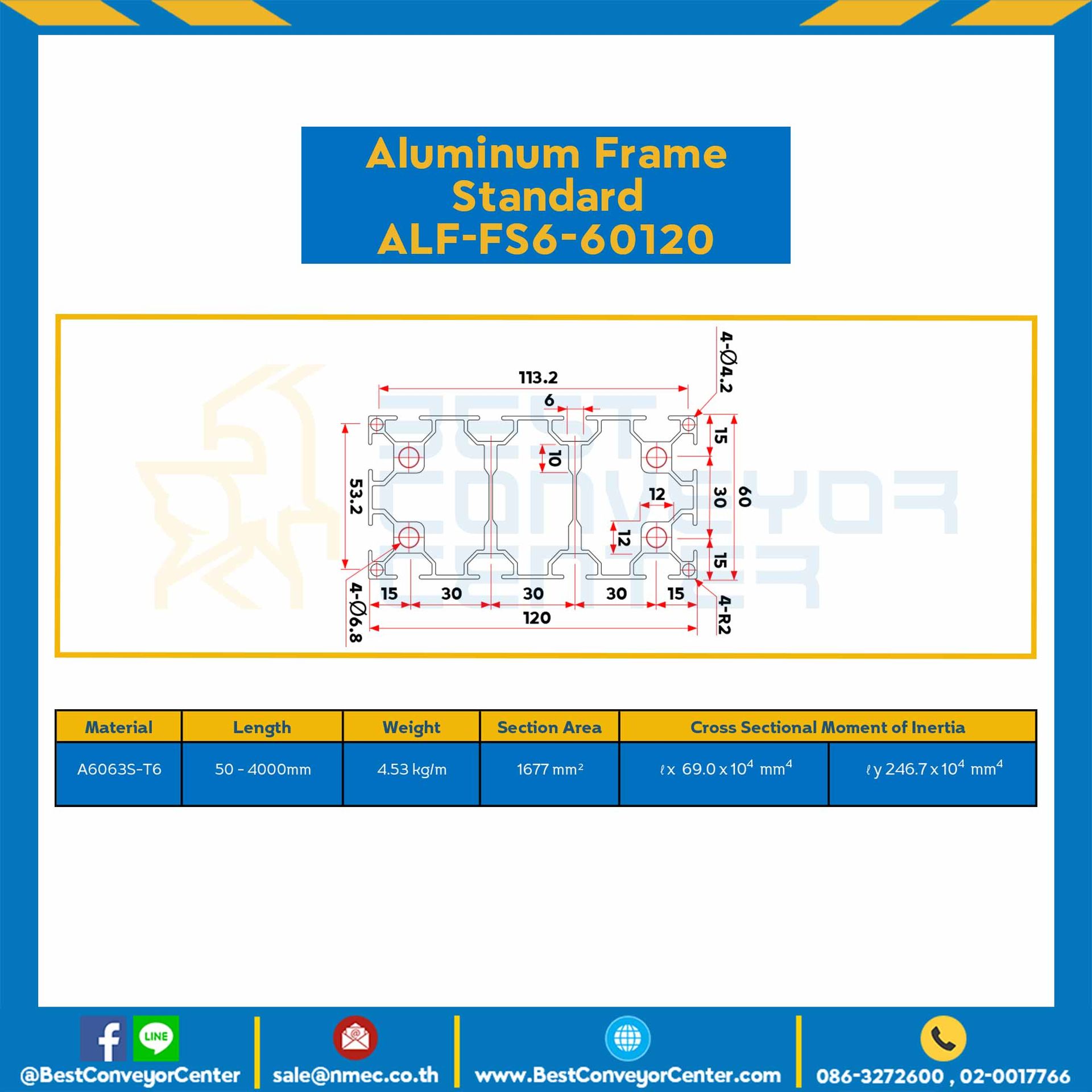 Aluminum Frame 6 Series Slot width 8 60×120 mm. L2500 mm. Clear Anodize : ALF-FS6-60120-2500