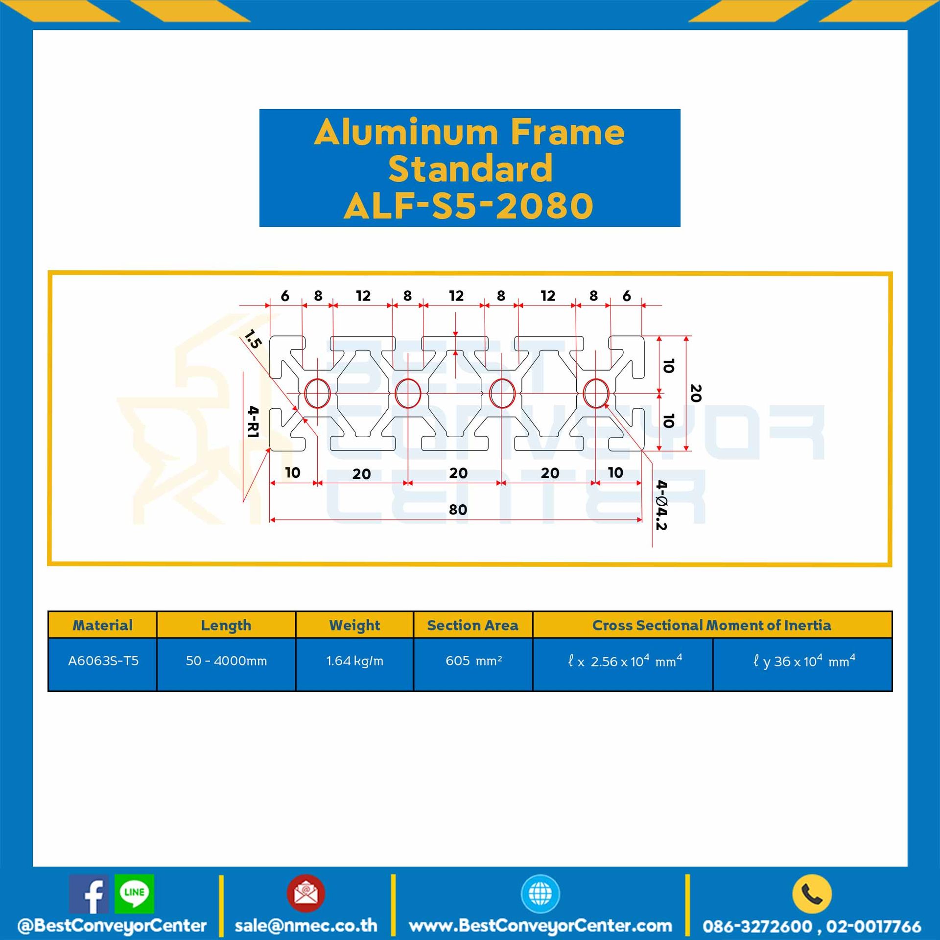 Aluminum Frame 5 Series Slot width 6 20×80 mm. L1300 mm. Clear Anodize : ALF-S5-2080-1300