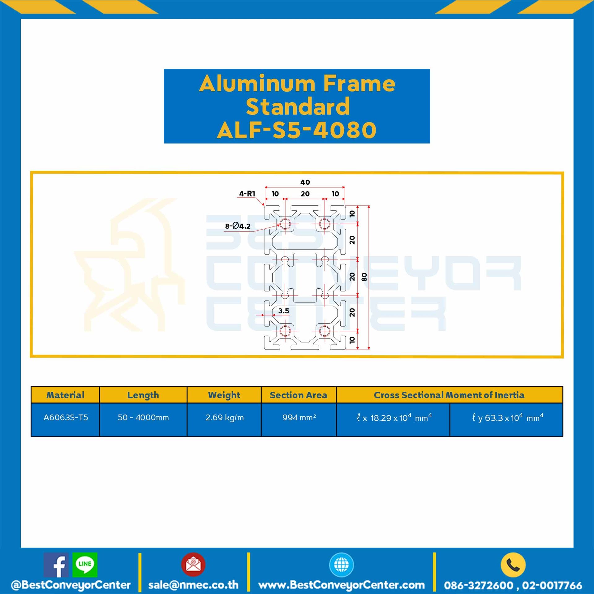 Aluminum Frame 5 Series Slot width 6 40×80 mm. L1150 mm. Clear Anodize : ALF-S5-4080-1150