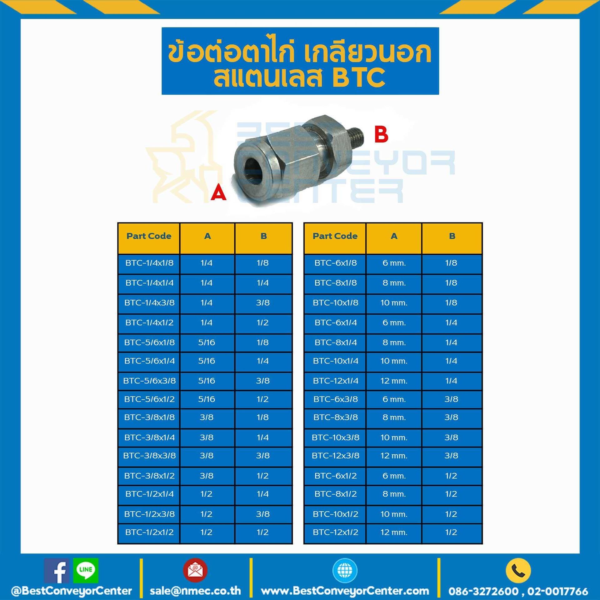 ข้อต่อตาไก่เกลียวนอก สแตนเลส 8 mm.x1/8″ : BTC-8×1/8