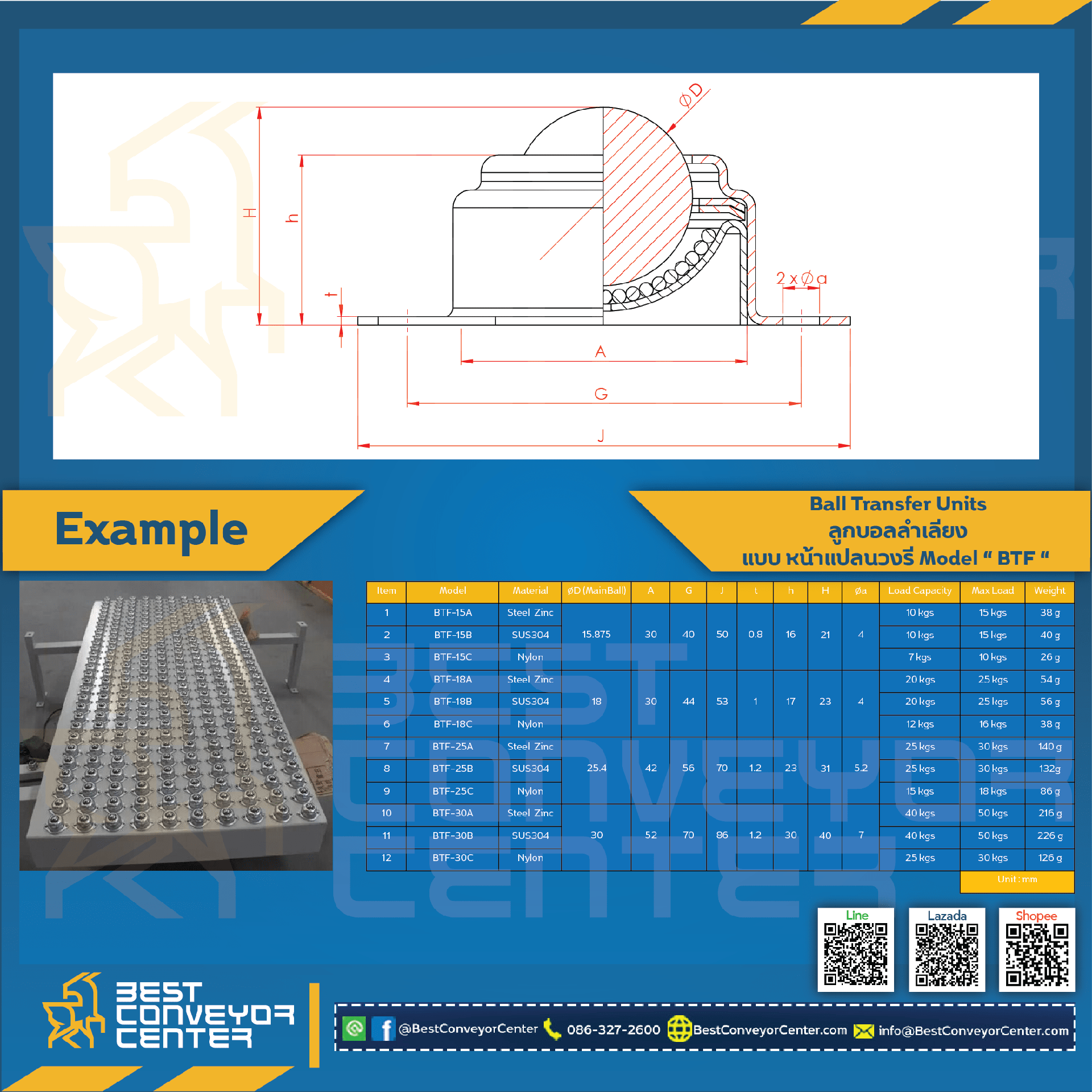 BTF-25B : Ball Transfer Units แบบหน้าแปลนวงรี 25 mm. (SUS304)