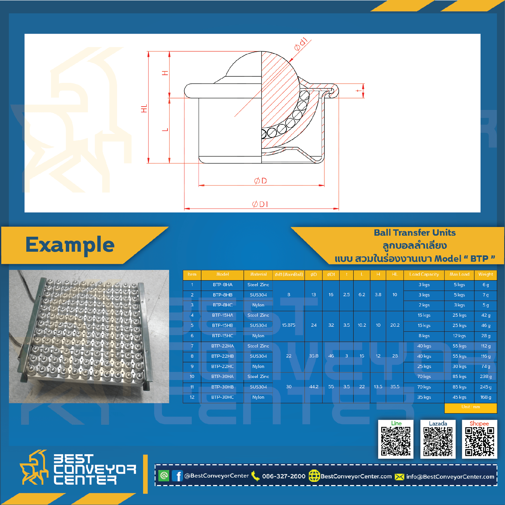 BTP-8HB - Ball Transfer Units แบบสวมในร่องงานเบา 8 mm. (SUS304)