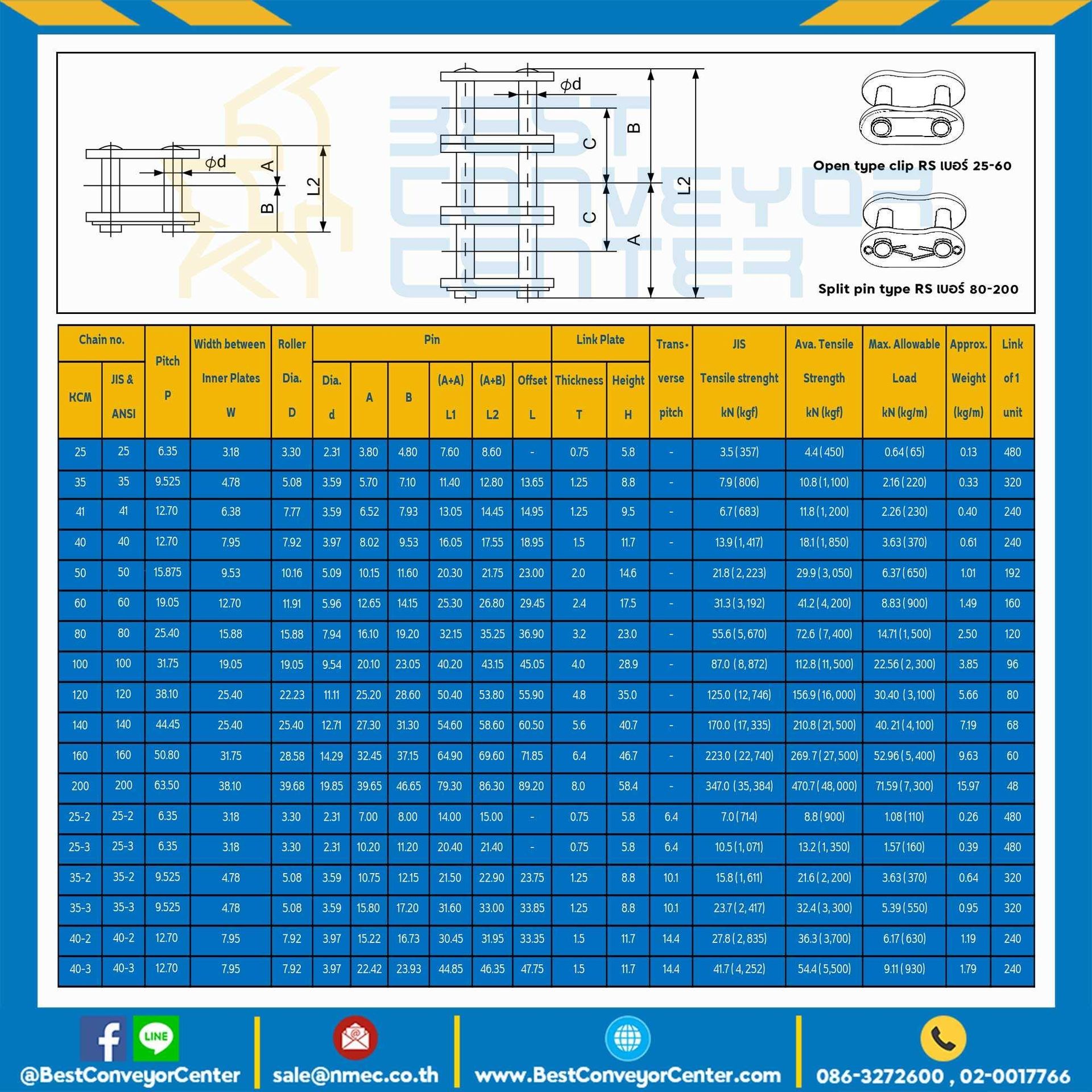 CL35R1P1SS : ข้อต่อเต็มข้อ แถวเดี่ยว No.35 (SUS304)