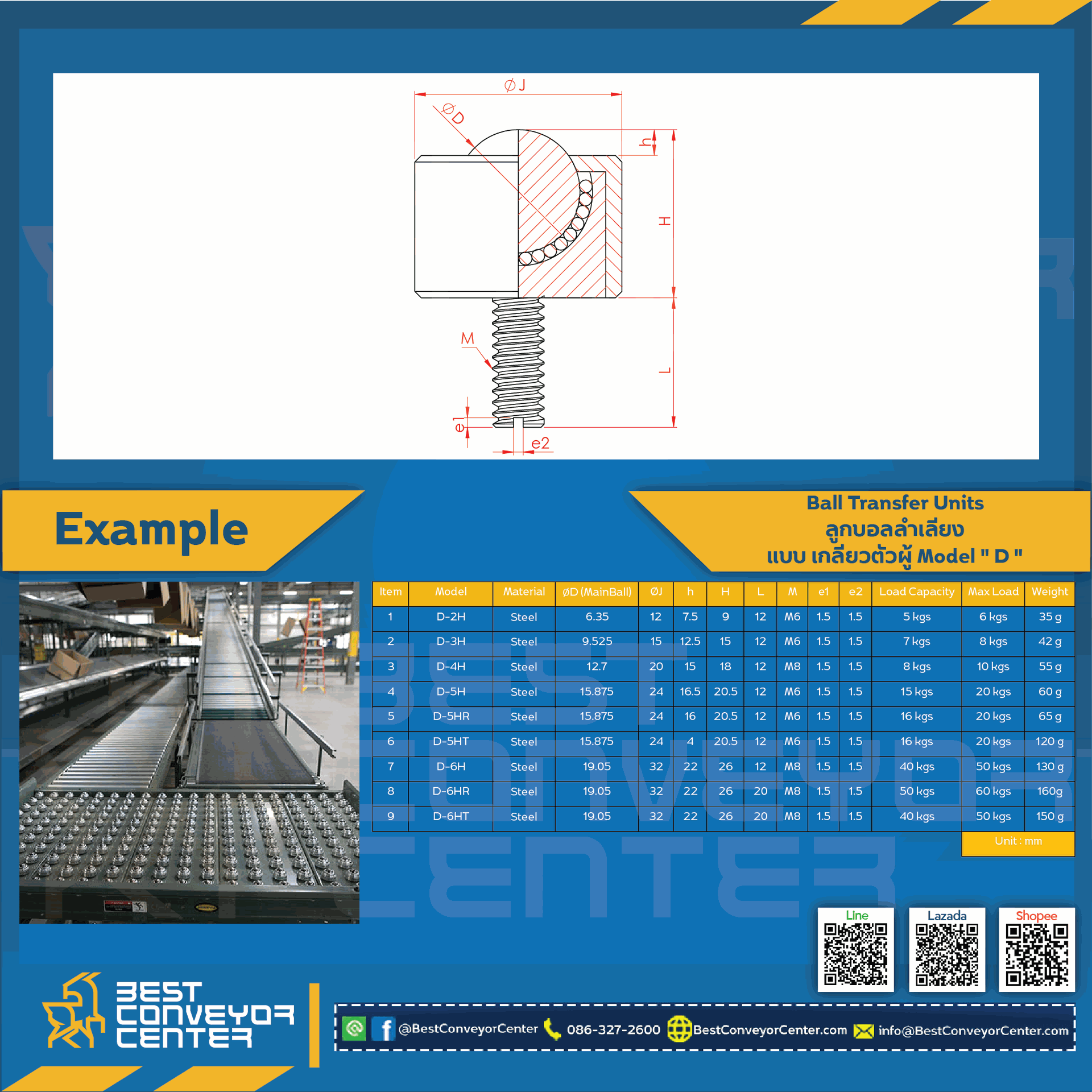 D-5HT : Ball Transfer งานหนัก 15.8 mm.เกลียวตัวผู้ M6