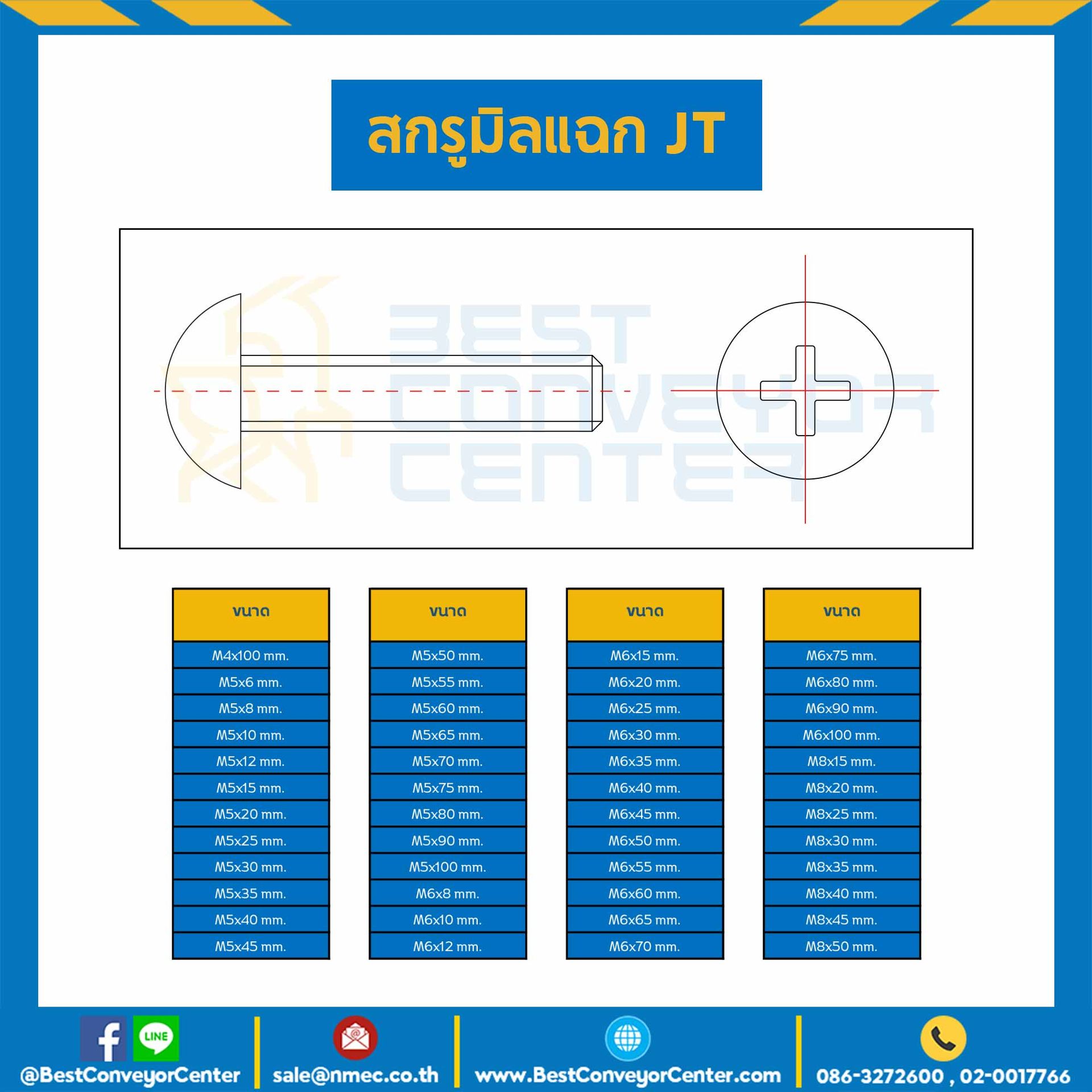 สกรูสี่แฉกหัวกะทะ JT+ ชุบขาว ขนาด M4x50 mm. : HJT-M4L50S