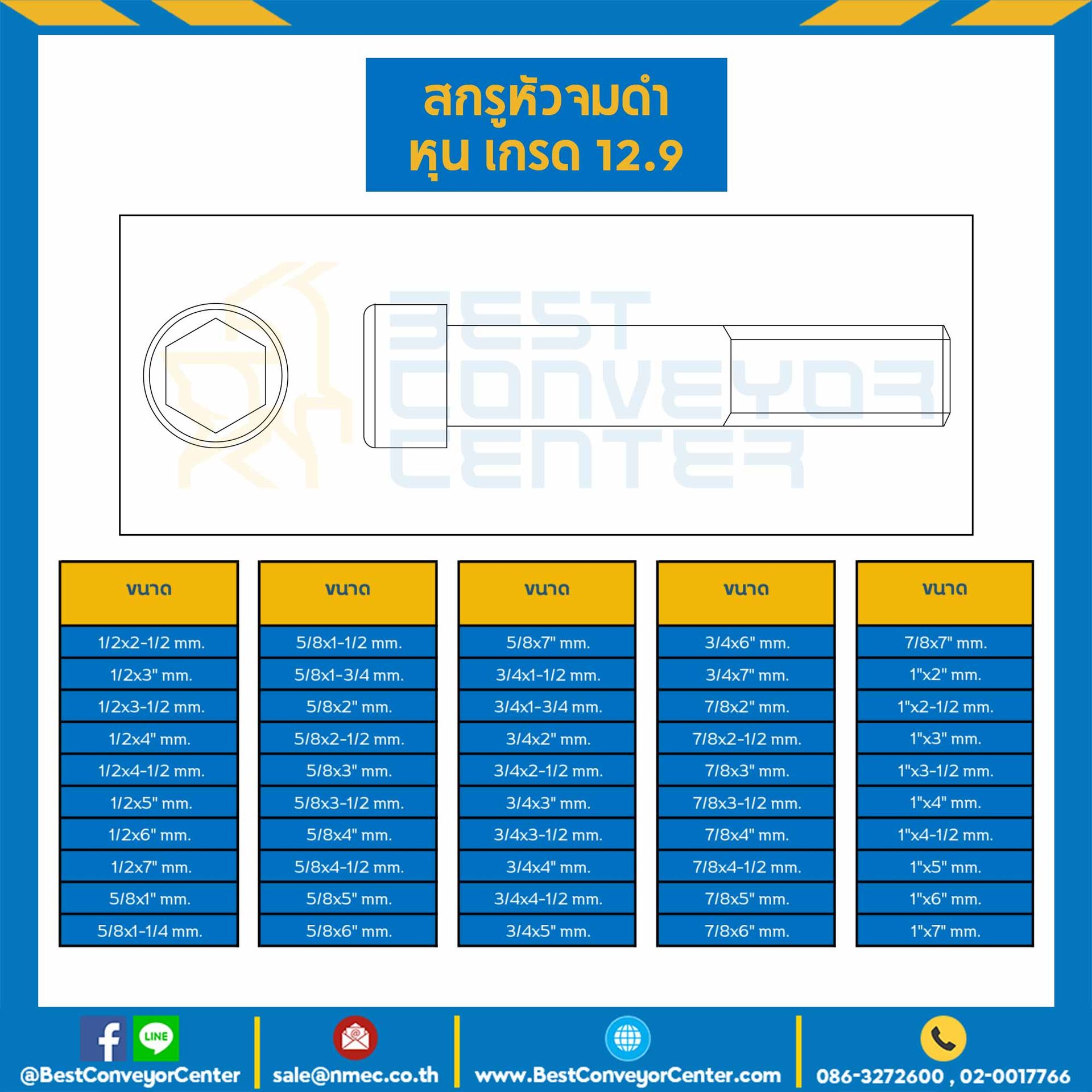 สกรูหัวจมดำ เกรด 12.9 ขนาด 1/4×4″ mm. เกลียว 20 UNC : HS-M1/4L101x12.9B-UNC