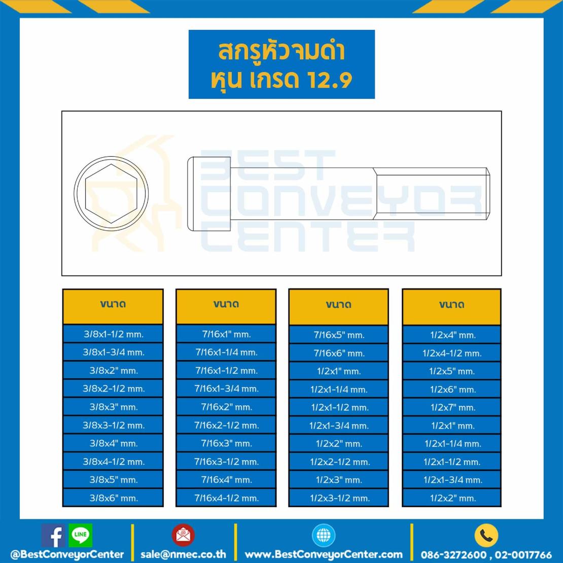 สกรูหัวจมดำ เกรด 12.9 ขนาด 1″x4″ mm. เกลียว 8 UNC : HS-M25L101x12.9B-UNC