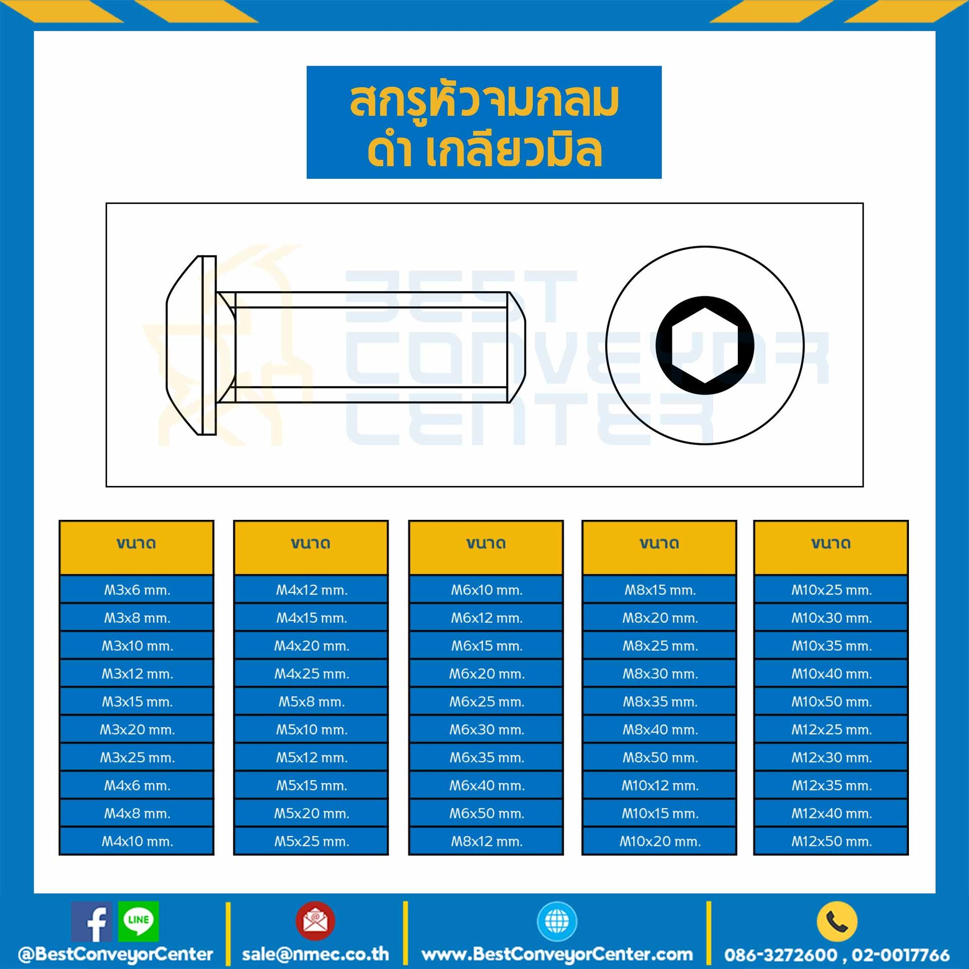 สกรูหัวจมกลมดำ ขนาด M3x12 mm. : HSB-M3L12B