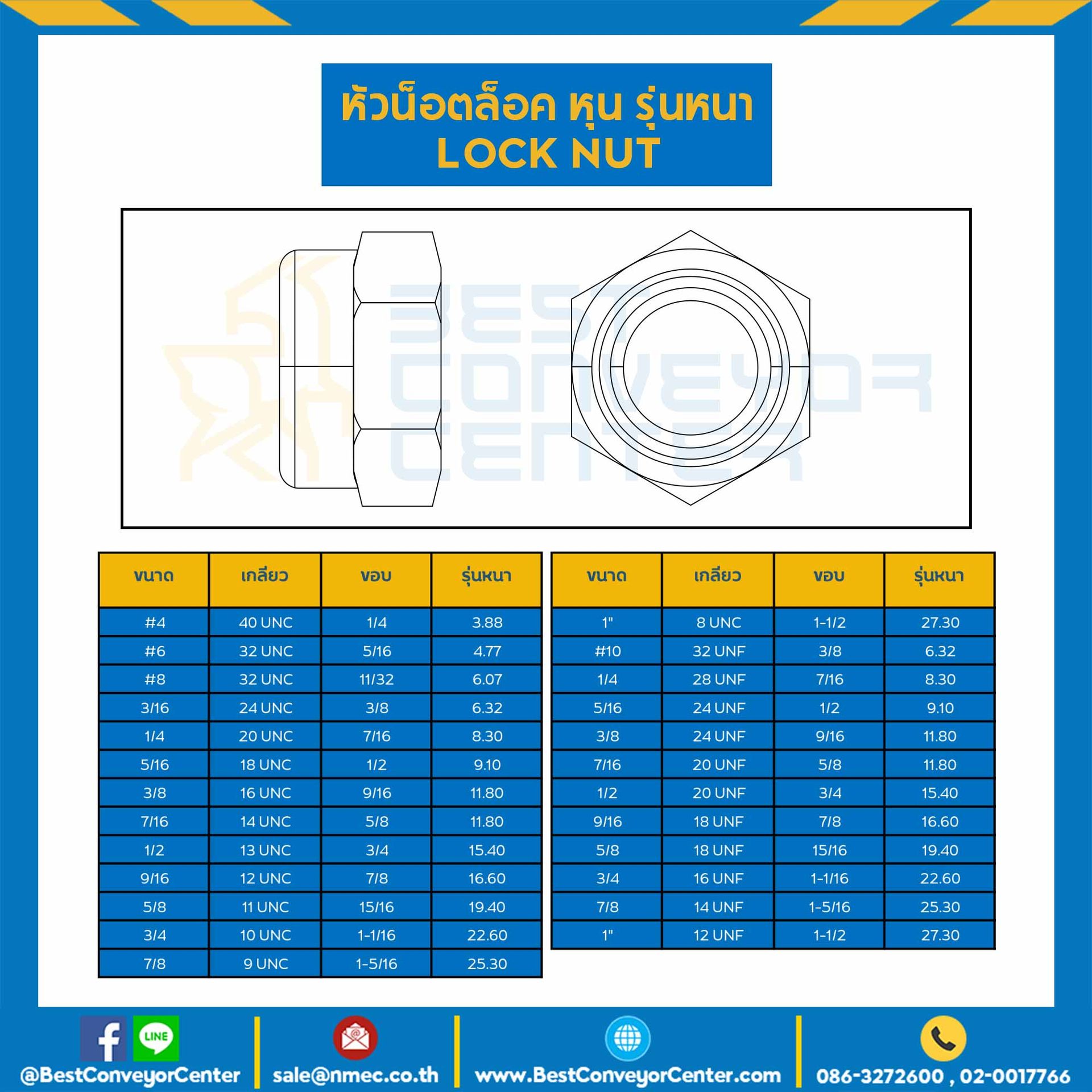 NLN-7/8-UNC ; หัวน็อตล็อคหุน ขนาด 7/8″x9 UNC ขอบ 1-5/16 รุ่นหนา 25.30 mm.