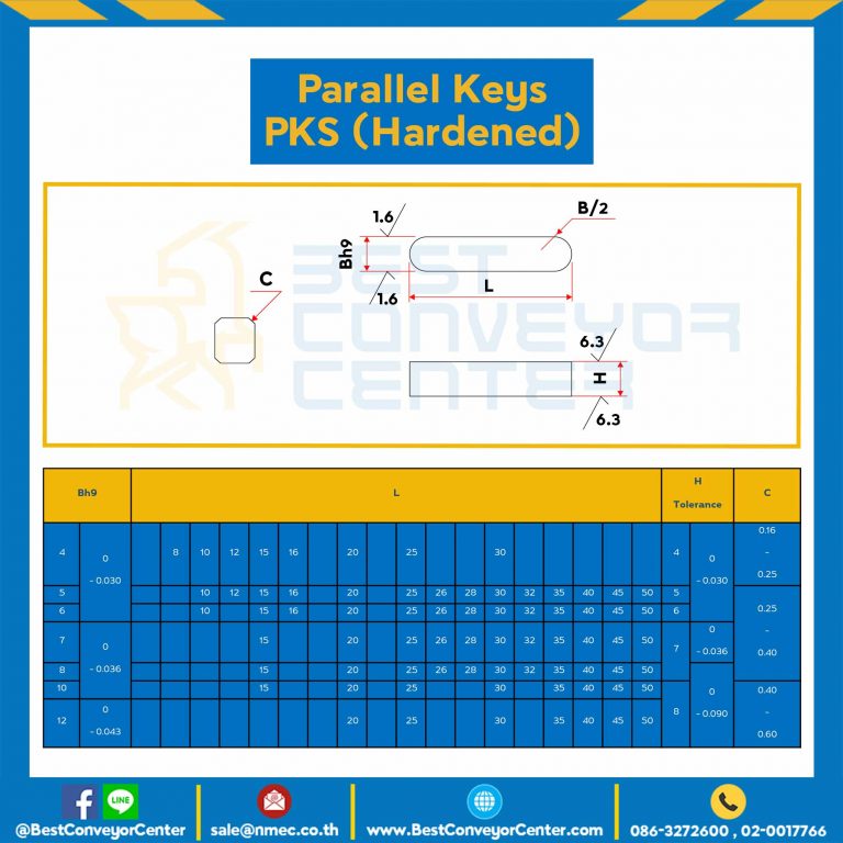 Parallel Key PKS 18×50-S Parallel Key แบบกลม ที่ปลายทั้งสองด้าน ขนาด 18×50 mm. เหล็ก