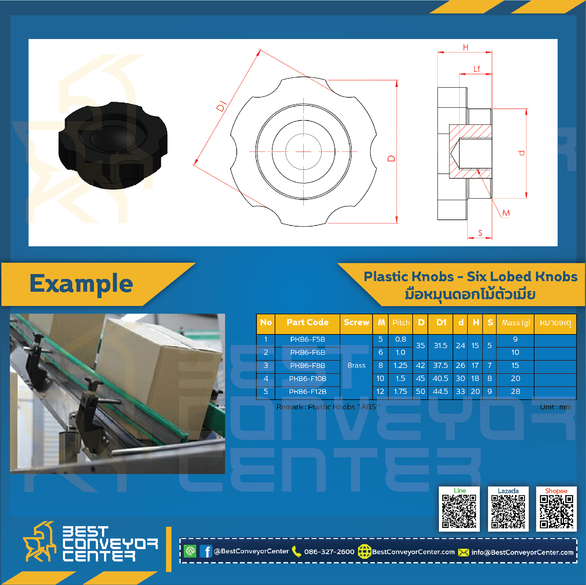 PKB6-F8B ; มือหมุนดอกไม้ ตัวเมีย M8 ทองเหลือง