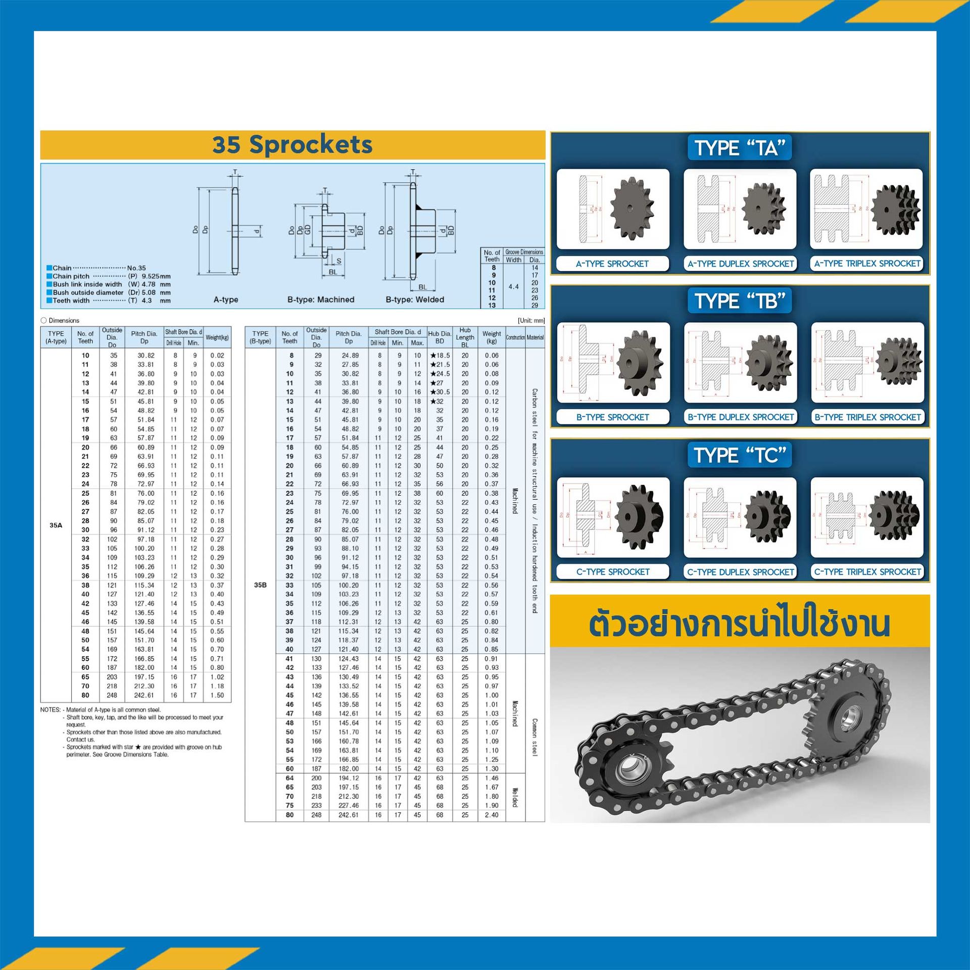 เฟืองโซ่สแตนเลส 3 แถว แบบมีดุมข้างเดียว RS35SS-3R-45TB